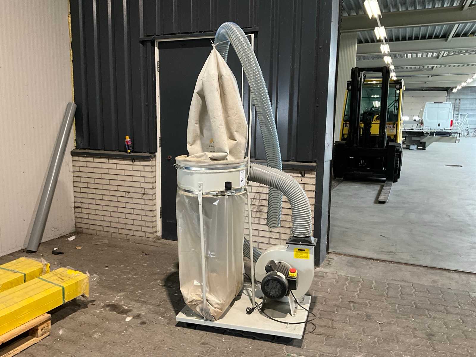 Extraction system consisting of 2 units, 1 of which is wall-mounted at a height of approximately 3.5 meters, as well as the various pipework spread over the workshop.