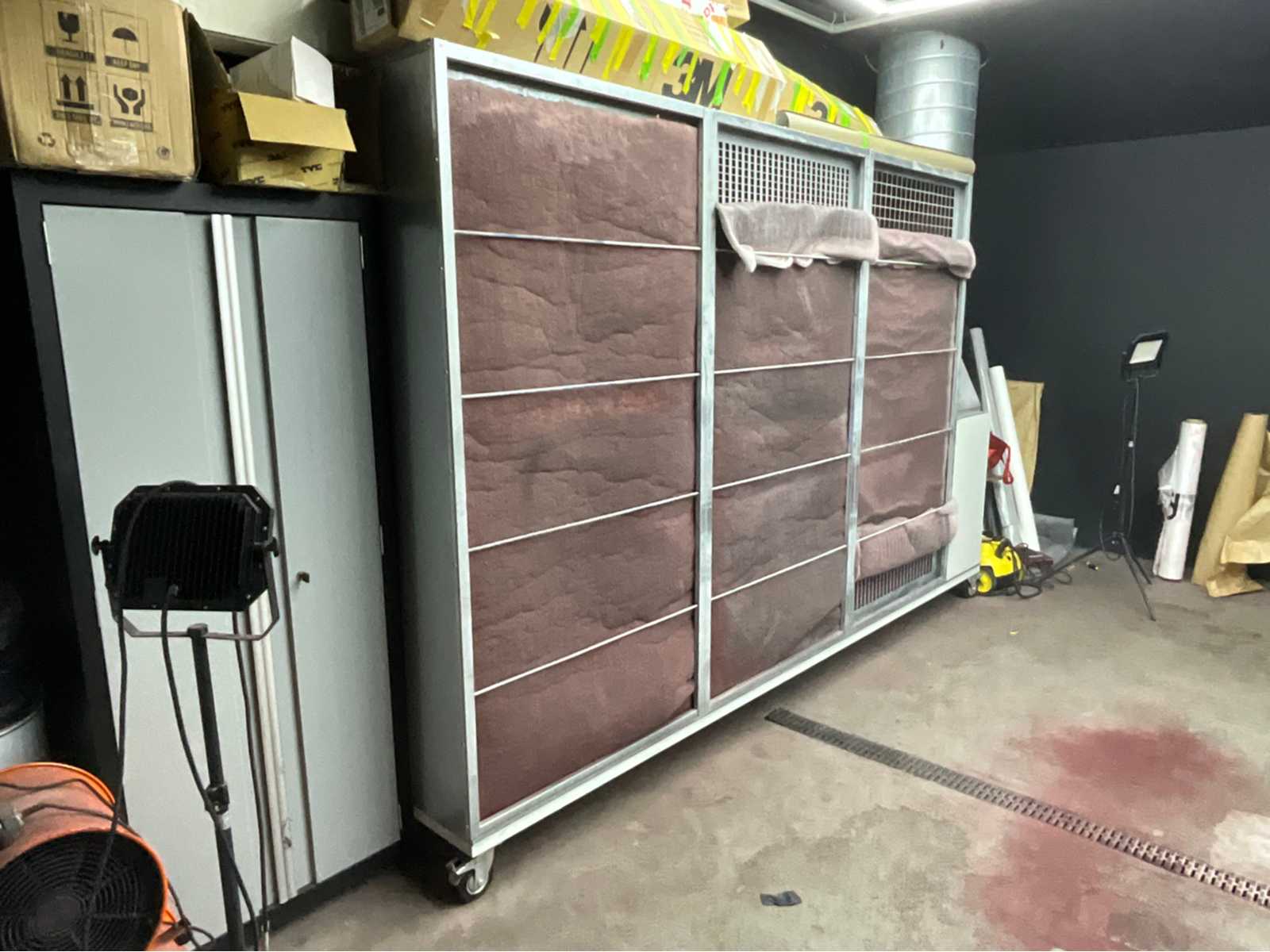 Dimensions: approx. 3600 x 850 x 2140 mm Air capacity: 9000 m3/h Rated power: 3.0 KW (explosion-proof) Electrical connection: 400 V / 16 A Exhaust air: Ø 500 mm Frequency converter with control cabinet for controlling the extraction system Flexible exhaust air hose (Ø 500mm) with wire spiral (length: 10 cm) m) Flame retardant, self-extinguishing This lot has not been tested for functionality. The seller does not assume any warranty for the condition and functionality of the lot; No loading or dismantling: For this lot, the seller will not provide loading aids or dismantling work. Dismantling and removal are carried out exclusively by the buyer at his own risk; Auction-ID: A7-45518-1