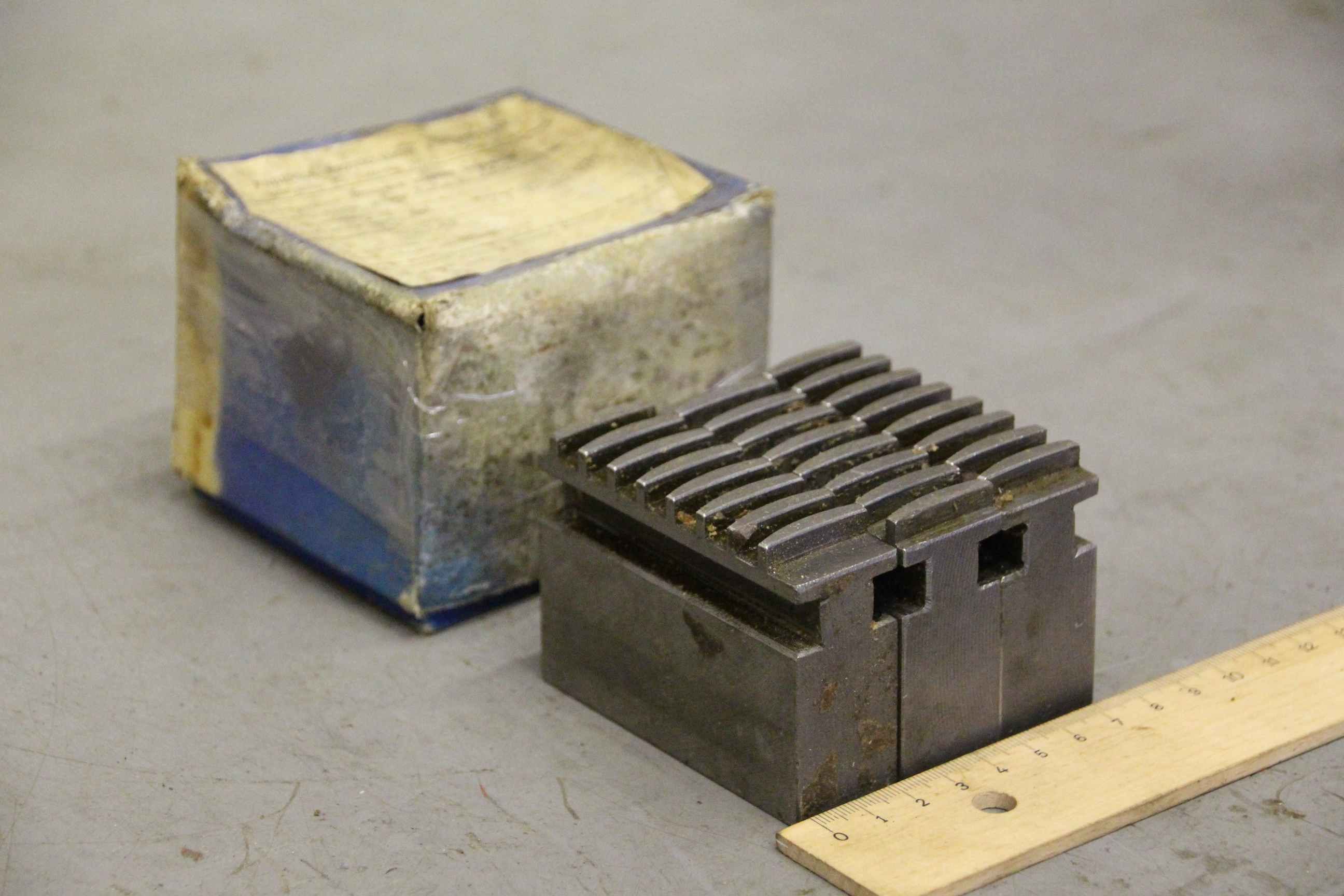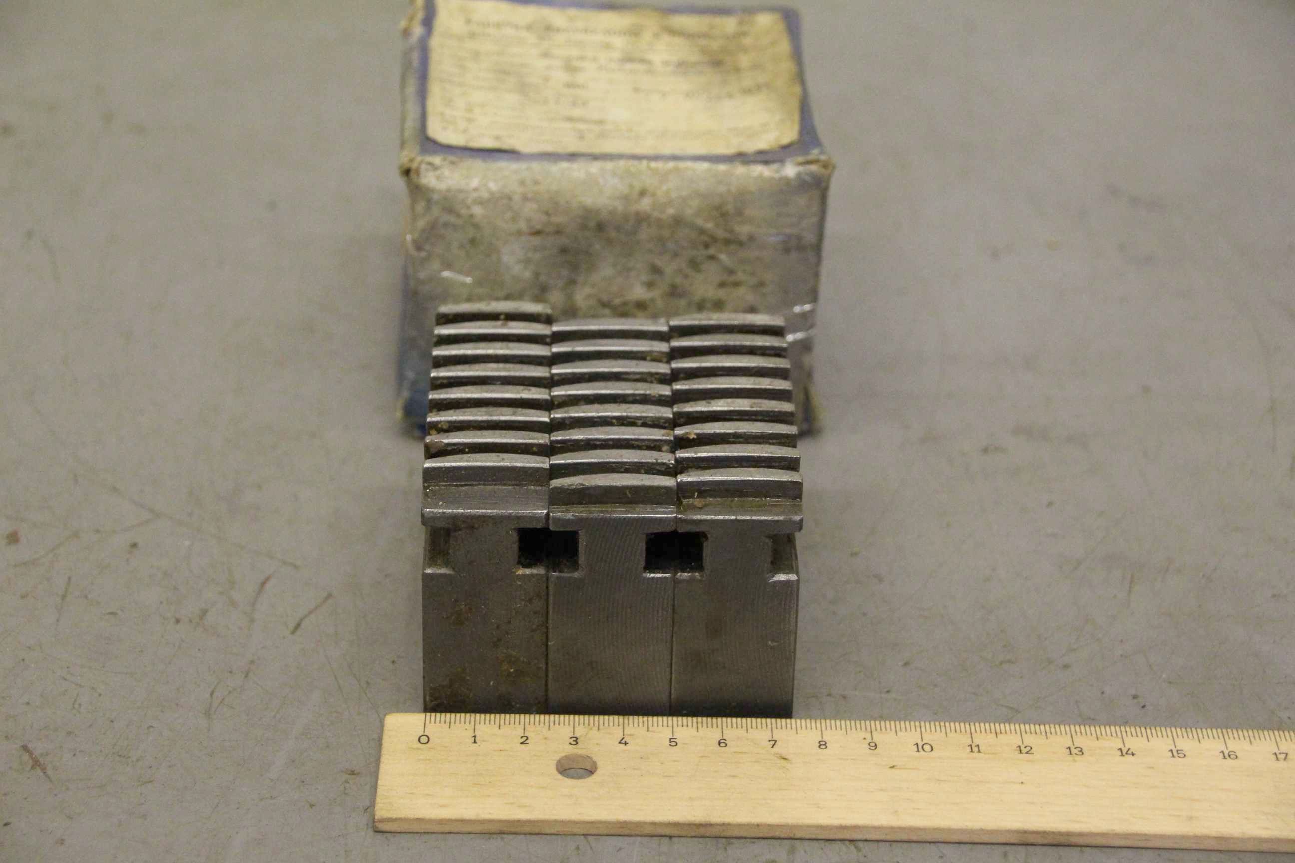 Interchangeable jaws, top jaws, three-jaw chucks, segment jaws, clamping jaws, step block jaws, step top jaws, block jaws -Manufacturer: Fabryka Przyrzadow, 3-piece soft top jaw set -Type: PUTm-M 200 -Width: 25 mm -Number: 5x jaw sets available -Price per piece -Dimensions carton: 80/90 / H75 mm -Total weight: 2.3 kg / set
