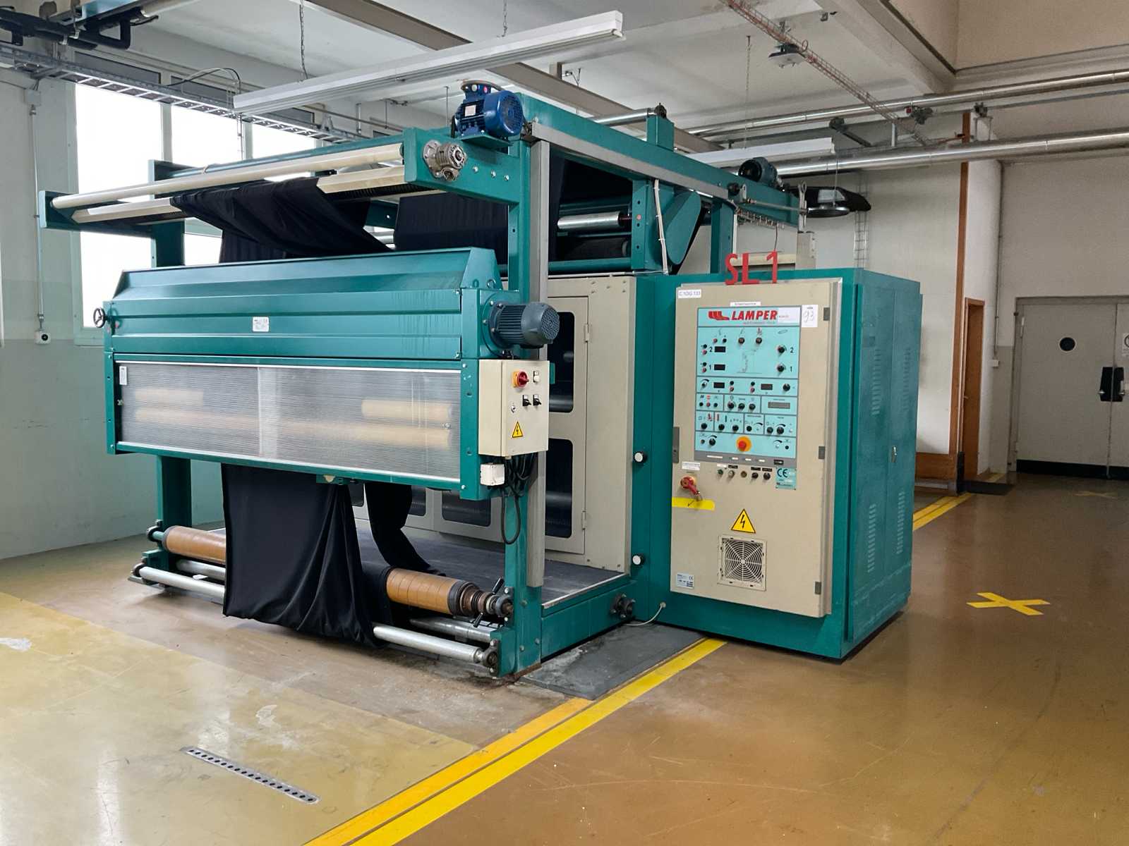 ZIMMER THERMOCURE TEXTILE FABRIC CURING MACHINE / EDGER High Capacity Hot Air Dryer MAKE : ZIMMER TYPE : THERMOCURE UHD 3 YOC : 2005 WW : 2000 mm CONTENT : 240 m HEATING : HOT OIL GAS FIRED WITH THERMAL OIL BOILER TEMPR : MAX. 250 C