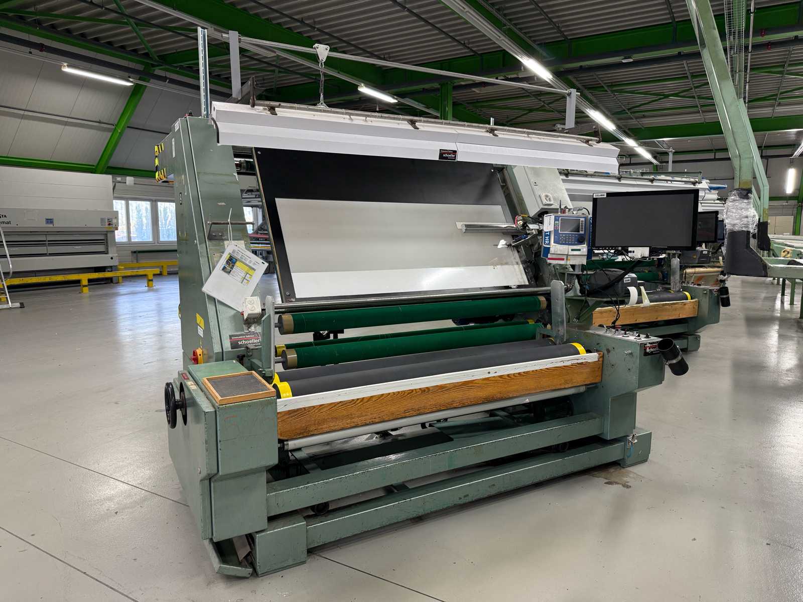 Four fabric inspection machines are available (1) Menzel WOB 1.600mm fabric inspection machine, working width: 1600mm (2) Menzel WOB 3.200mm fabric inspection machine from Hoftex, working width: 3200mm (3) Bauch Maschinenbau CB-WU 380 fabric inspection machine (4) Maag CT 5206-Ah fabric inspection machine. On-site viewing is possible.