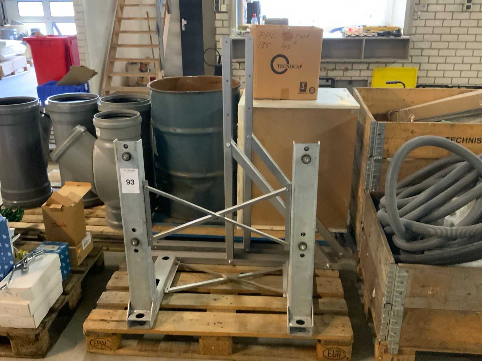 Including: flexible pipe jacket, 3 PVC y-pieces 315 x 250mm, 1 kitchen cabinet, 1 box with drains. On 5 pallets