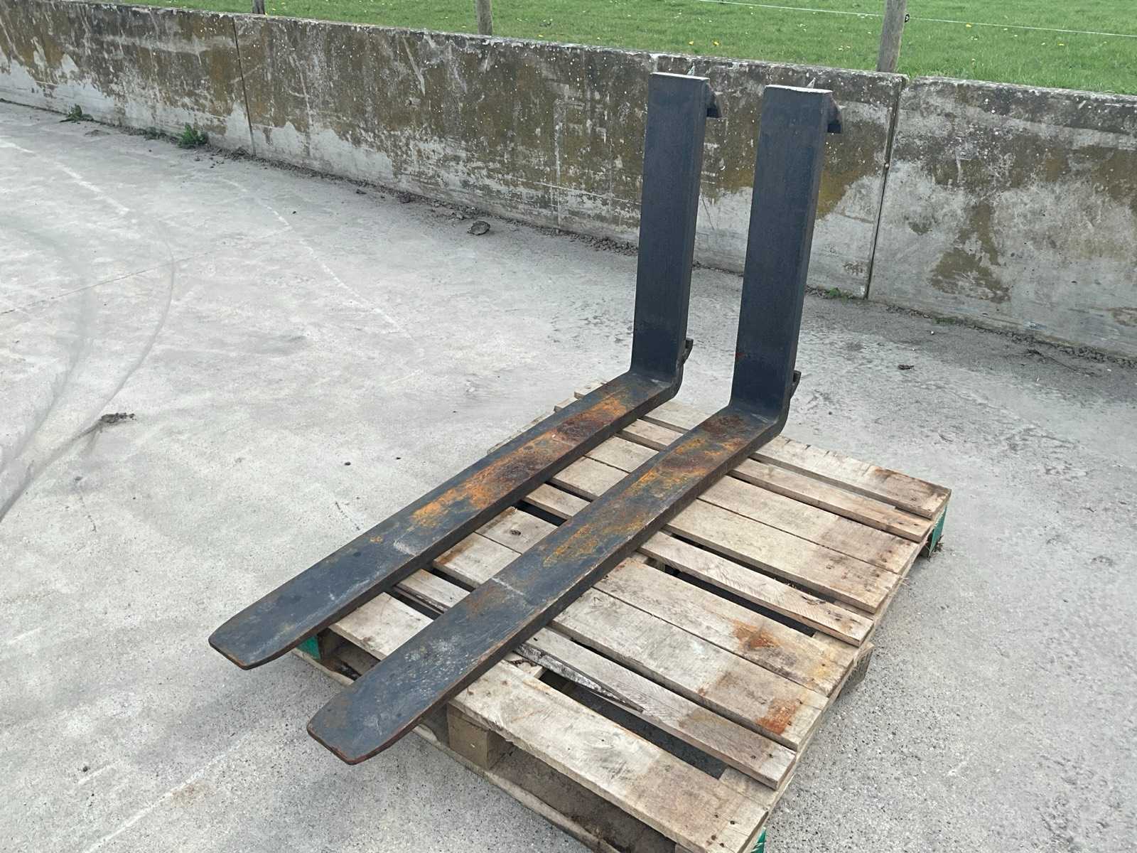 Forklift forks, forks, forklift tines with anti-slip coatingLoad capacity: approx. 2.5 ton. Tine length: 1600 mm Tine width: 100 mm Tine thickness: 50 mm (40 mm metal + 10 mm rubber coating coating)Fork carriage height: 405 mm - suitable for tine holder: FEM 2 Form B rubber coating as anti-slip coating and for protecting transport goods? Rocker arm lockWeight: 145 kgas good as new, unusedFor a 2.5 ton. Forklift.; used