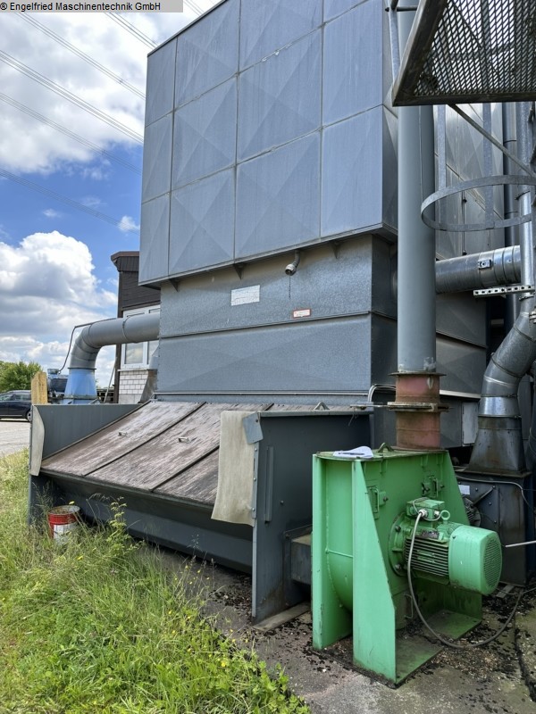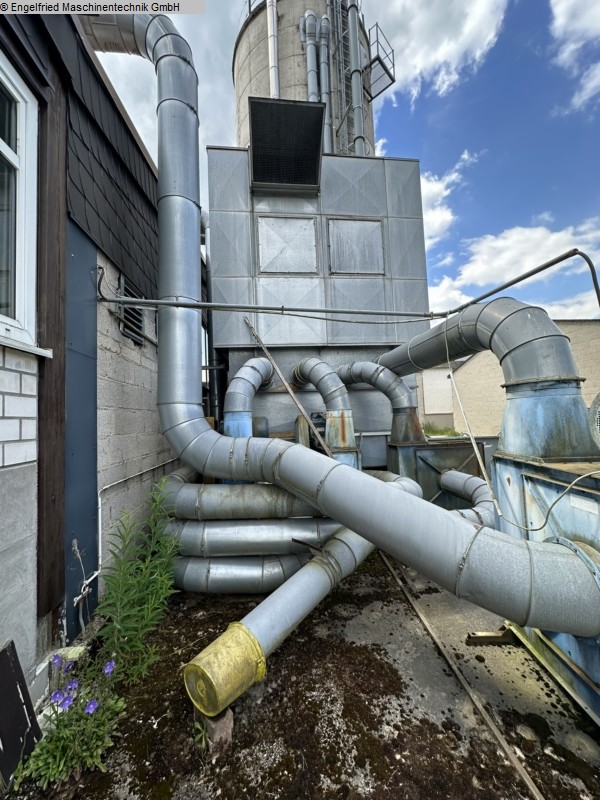 Dimensions (L/W/H): 3500 x 3500 x 6000 mm Filter capacity: 216 m² Number of filters: 121 (11x11) St. From the closure of the window construction company ---------------------------- Nestro filter system with various fans Automatic shaking-extinguishing line including Heizomat feed for wood chips with transport to the silo ---------------------- Info: Outside: Intermediate filter, Heizomat, fans and pipes must be dismantled by yourself. Switch cabinets (fans, control, Heizomat feed) already disconnected by electrician and ready for shipping. Dimensions approx.: ---------------------- Filter system: upper part: length 3.4 m x depth 3.4 m x height 3.0 m lower part: length 3.0 m x depth 3.0 m x height 1.9 m adjustable feet: height approx. 0.9 m filter hose length probably 2,500 mm filter area probably 216 m2 heating system feed length 3.8 m x depth 1.4 m (technical information according to ...