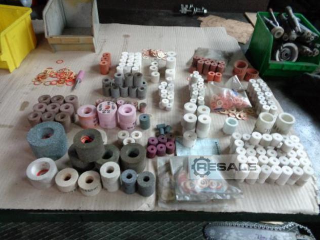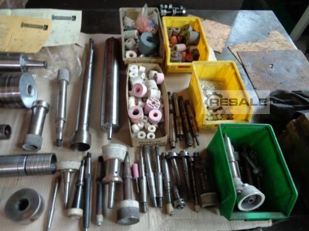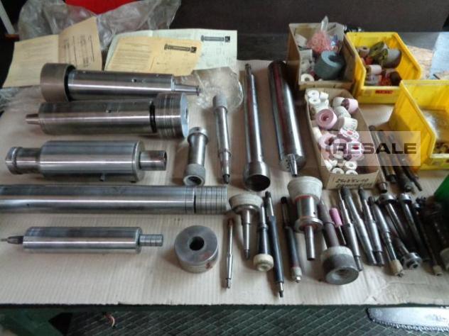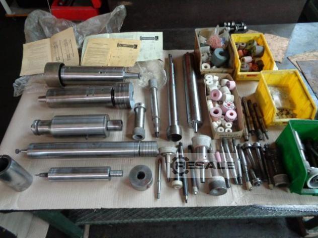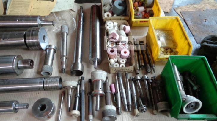 Grinding spindle incl. grinding wheel, 2 holders, belt wheels, electric motor, wheel cover, balancing mandrel, and description. Fortuna, 14 UA 85, Outer Ø : Ø 85 mm Length : approx. 400mm Other grinding spindles on request. See photos !