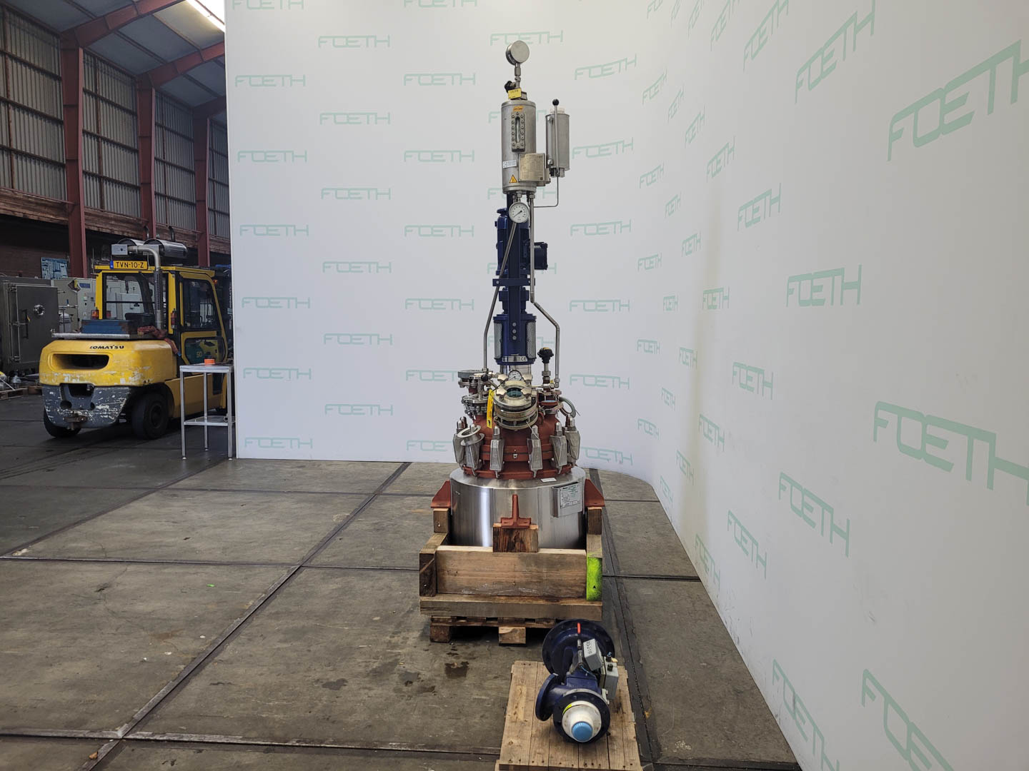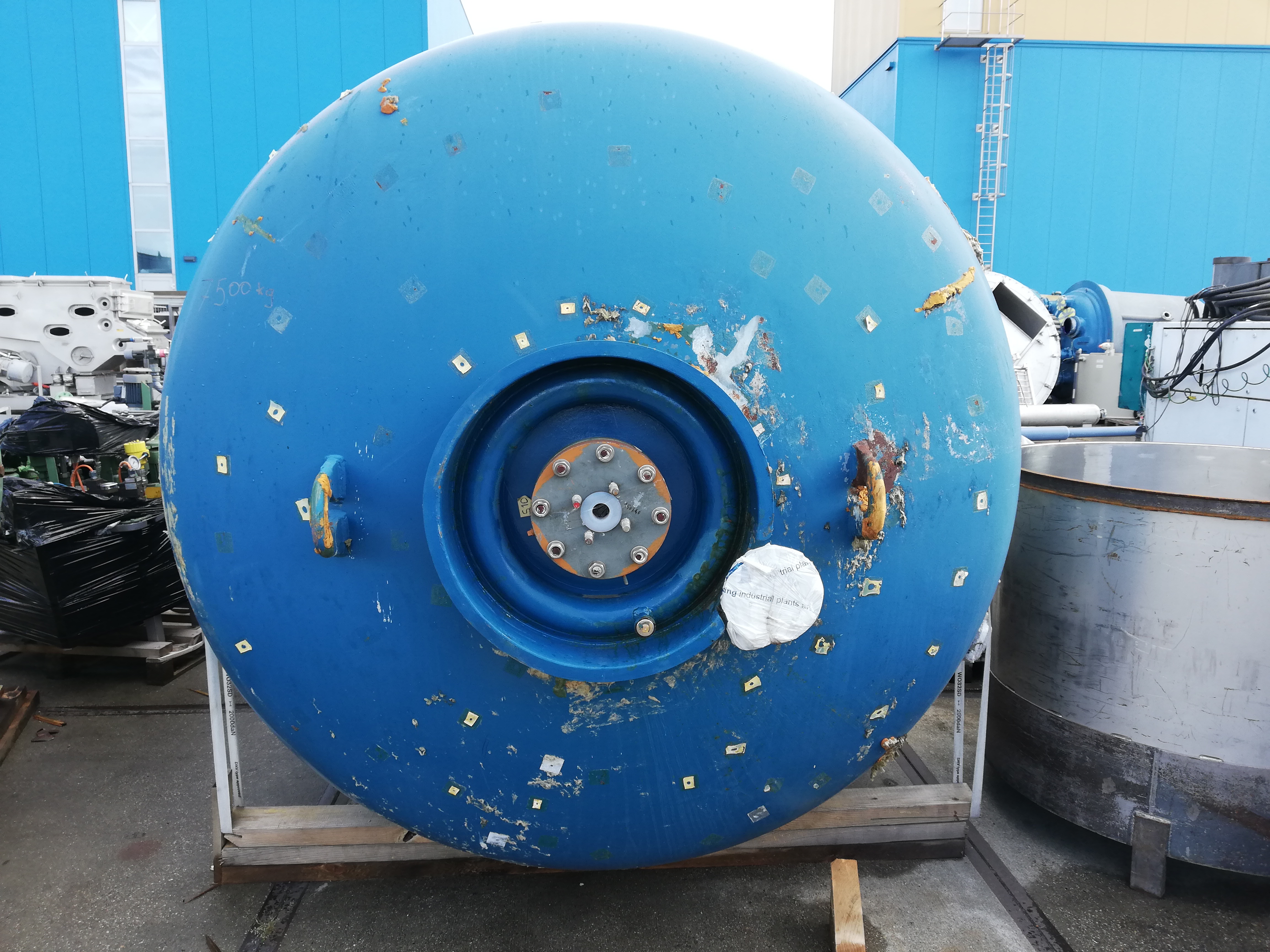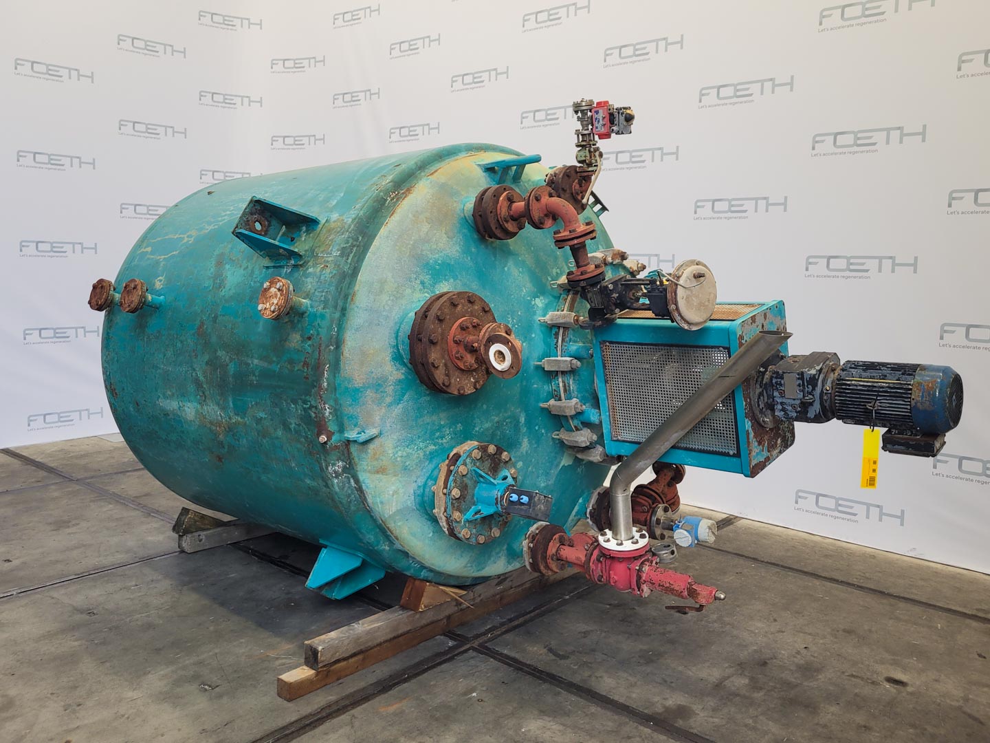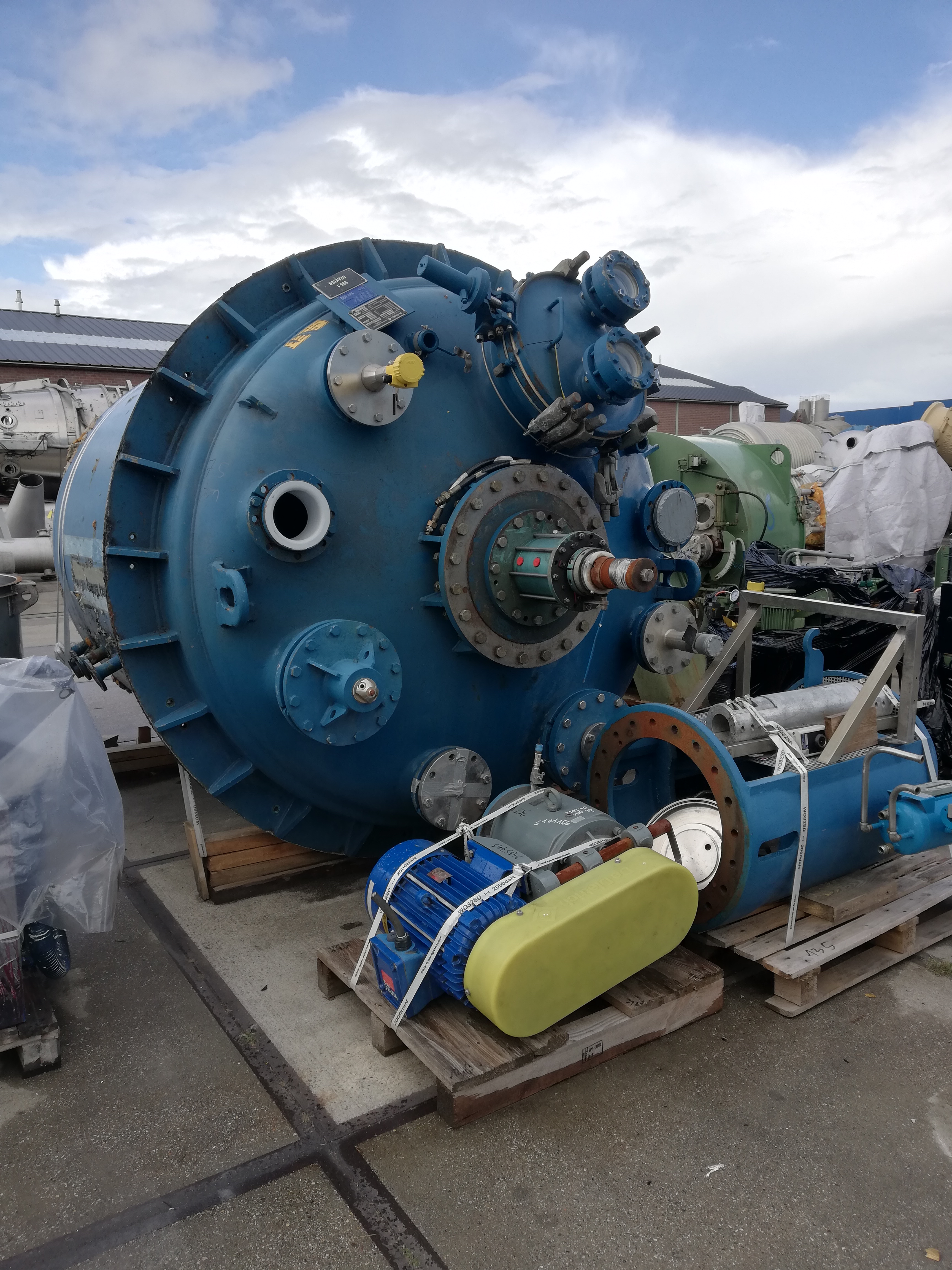 General SKU322W671 MakePfaudler LocationBarneveld CEcheck TypeBE-16000 Pressure Working pressure6 Bar Vacuum possiblecheck Working pressure jacket8 Bar Vacuum possible jacketcheck Main Features MaterialGlass Volume16000 Ltr. Motor18.5 KW Specified Features - Glass-lined Reactor MaterialGlass - Enamel Glass Reactors Reactorcheck Capacity18200 L (netto 16000l) Vessel sizes⌀ 2542 x 4080 mm Dished bottomcheck Dished top sidecheck Manholecheck DN600 Top connectionsDN 300 (3x), DN200 (5x) OutletDN 150 With jacketcheck 1451 l Max. temperature-25/+200°C With propellor stirrercheck (With Cryo lock) Motor18.5 kW, 400/600V, 1474rpm (EX) Speed mixing shaft75 rpm Information No.70173 Year of construction2003 Floorspace3,3x3,3 m Total height6,4 m Weight19000 kg Extra SpecificationsThis reactor has 3 repaired damages (see the photos). : Reparation report availa ...