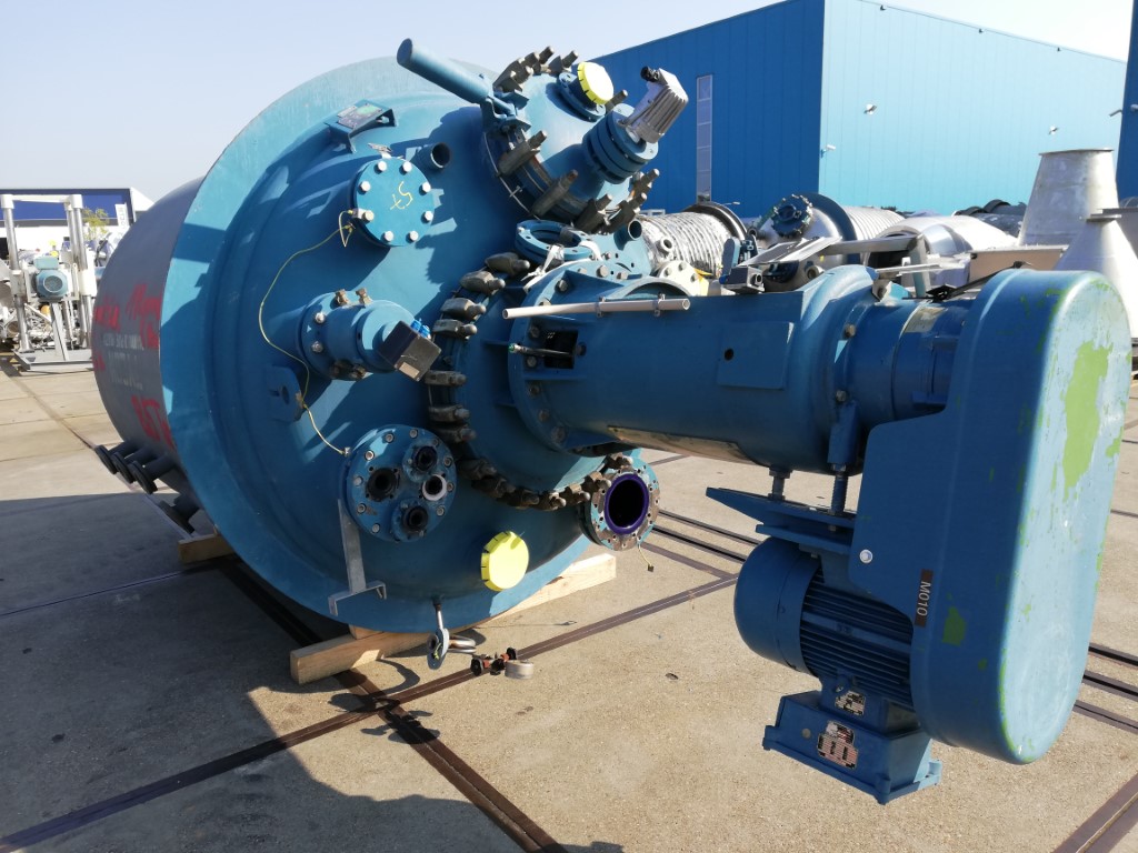 General SKU221S092 MakeTycon (It) Type6300 ltr. No.3950 Year of construction1990 LocationBarneveld Pressure Working pressure6 Bar Vacuum possiblecheck Working pressure jacket7 Bar Main Features MaterialGlass Volume6300 Ltr. Motor18.5 KW Specified Features - Glass-lined Reactor Reactorcheck Capacity7595 ltr. (nett 6300 ltr) Vessel sizesdia. 2000x2800mm Dished bottomcheck Dished top sidecheck ManholeDN500 Top connectionsDN150 (5x) DN250 (2x) OutletDN150 With jacket(695 ltr.) Max. temperature-30/200 degr. C With paddle stirrercheck Motor18,5 kW 380 Volt (Ex) Speed mixing shaft30-120 rpm Glass Reactors MaterialGlass Information Floorspace2,6x2,6 M Total height5,7 M Weight8500 Kg ATEX compatiblecheckFine chemicalsOther chemicalBiotechnologyAgrochemicalsCatalysts & fillersGlass-lined ReactorsSolventsDetergent & surf.Other pharmaceuticsCosmeticsLubricants & o ...