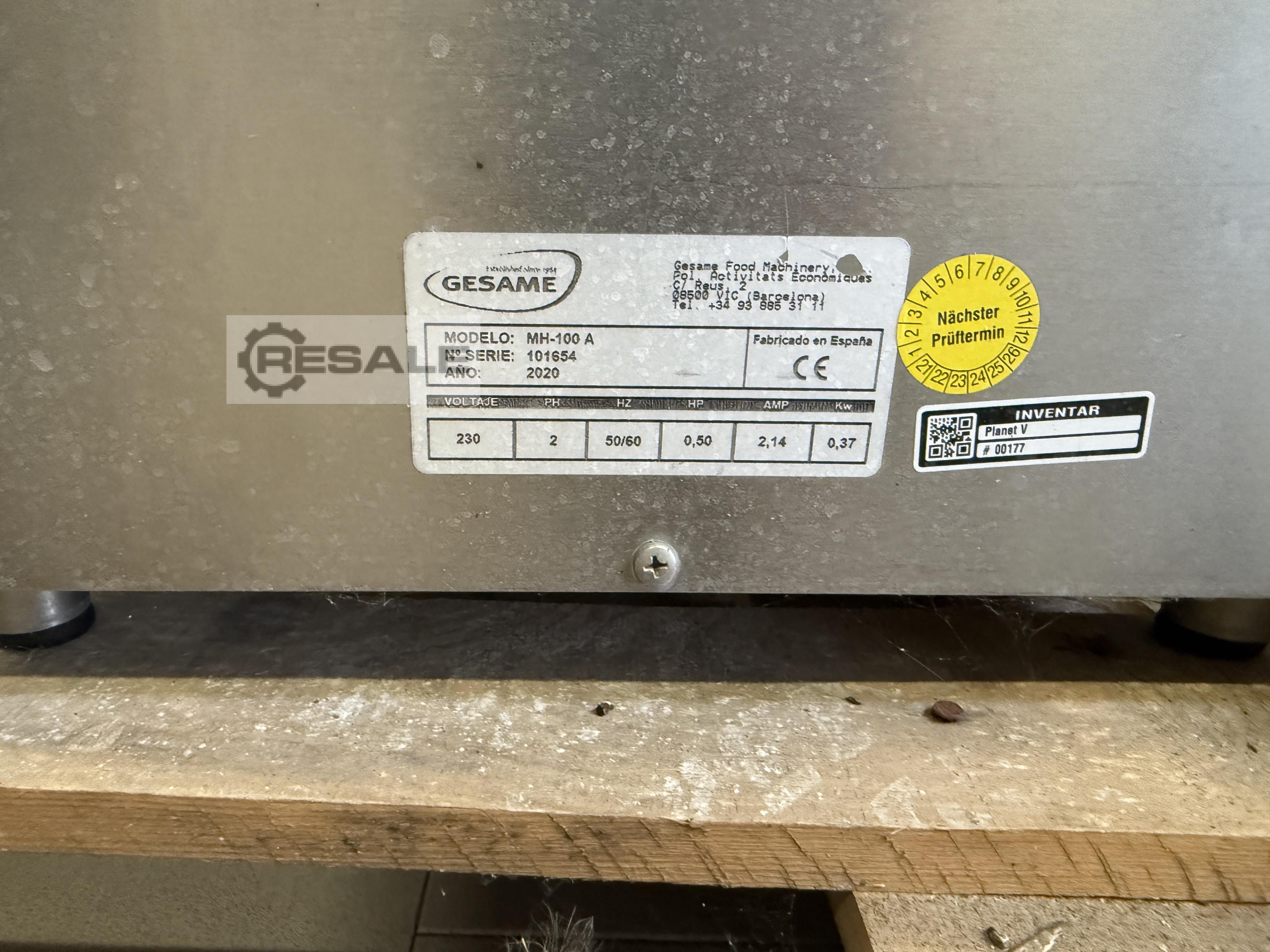On offer is an electric burger patty forming machine from Gesame Food Maschinery for portioning and forming minced meat/fish/potato or other masses. Technical data: Manufacturer: GESAME Food Machinery Model: MH-100 A Serial No.: 101654 Year of Make: 2020 The device is currently at our customer's site in Pasewalk and is being sold due to restructuring. The device has not been tested for functionality and completeness, so a viewing is recommended. Only the offered assets are expressly sold, any items that can be seen in the photos are expressly not part of the scope of the offer. We sell the assets on behalf of our customers. The offer prices are net prices in EURO ex works. Since these are used assets, we sell them without guarantee or warranty as well as the right to take back. The offers are subject to change, subject to errors and subject to any prior sale. Our terms an ...