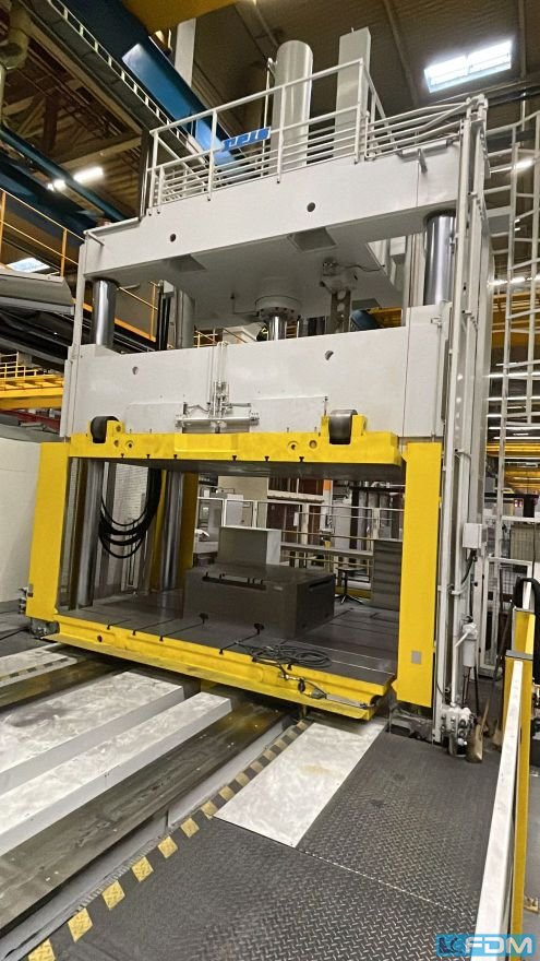 pressure:250 t table length:4000 mm table width:3000 mm Controls:SIEMENS SIMATIC C7 PRESS DESIGN:. - frame design : 4 column :. - moving bolster : yes :. PRESS FORCES:. - total force (nominal):250 to PRESS TABLE:. - clamping surface (left-right):4000 mm - clamping surface (front-back):3000 mm - tool weight max.:100000 kg - number of T-slots:12 - distance between T-slots:375 mm - height above floor level:390 mm RAM:. - clamping surface (left-right):4000 mm - clamping surface (front-back):3000 mm - number of T-slots:12 - distance between T-slots:375 mm - stroke:2900 mm - tool weight max.:50000 kg RAM (HYDR. PRESS):. - number of main-cylinders:1 - approximation velocity max.:180 mm/s - working velocity max.:50 mm/s - restoring force of ram:95 to TOOL ASSEMBLY DIMENSIONS:. - distance table - ram max.:2750 mm - distance between columns (H-frame):4100 mm - Free passage be ...