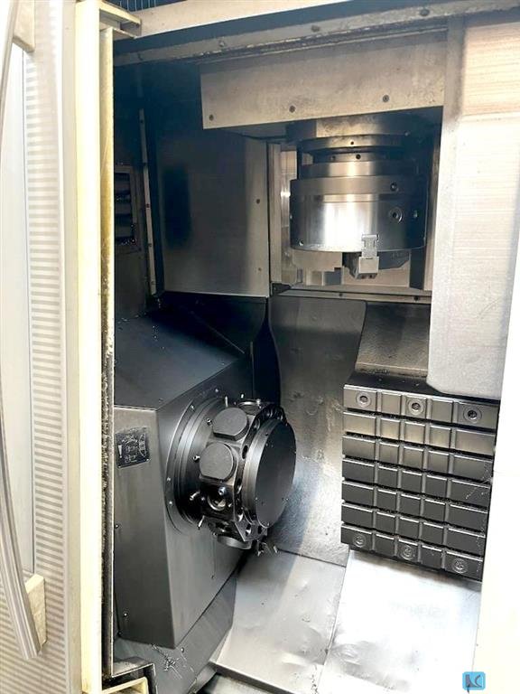 EMAG VTC 250 DUO DDYear of manuf. : 2020 Control : Siemens 840 Dsl Turning diam. : 140 mmTurning length : 700 mm____________Description:In General:Max. workpiece diameter:140 mmChuck diameter:250 mmMax. turning length:700 mmTrack I:Tool carrier I:Tool turret (X/Z)Tool drive:9,600 rpm, 44 NmTool holder:BMTNumber of stations:11 + 1 Part gripperX-axis:310 mmZ-axis:1,115 mmPosition sensors (X/Z):Direct scalesTrack II:Main spindle (OP10):Travelling direct drive spindleSpeed:5,000 rpmPower:33.9 kWTorque:231 NmChuck:Collet chuckClamping cylinder:Hydraulic clamping cylinderSupport control:PneumaticW-axis:772 mmC-axis:0.01°Position sensor (W):Direct scale:Sub-spindle (OP20):Direct drive spindleSpeed:5,000 rpmPower:33.9 kWTorque:231 NmChuck:2+2-jaw power chuckClamping cylinder:Hydraulic clamping cylinderC-axis:0.01°Track III:Tool Carrier II:Tool turret (X/Y/Z)Tool drive:9,600 rpm, 44 N ...