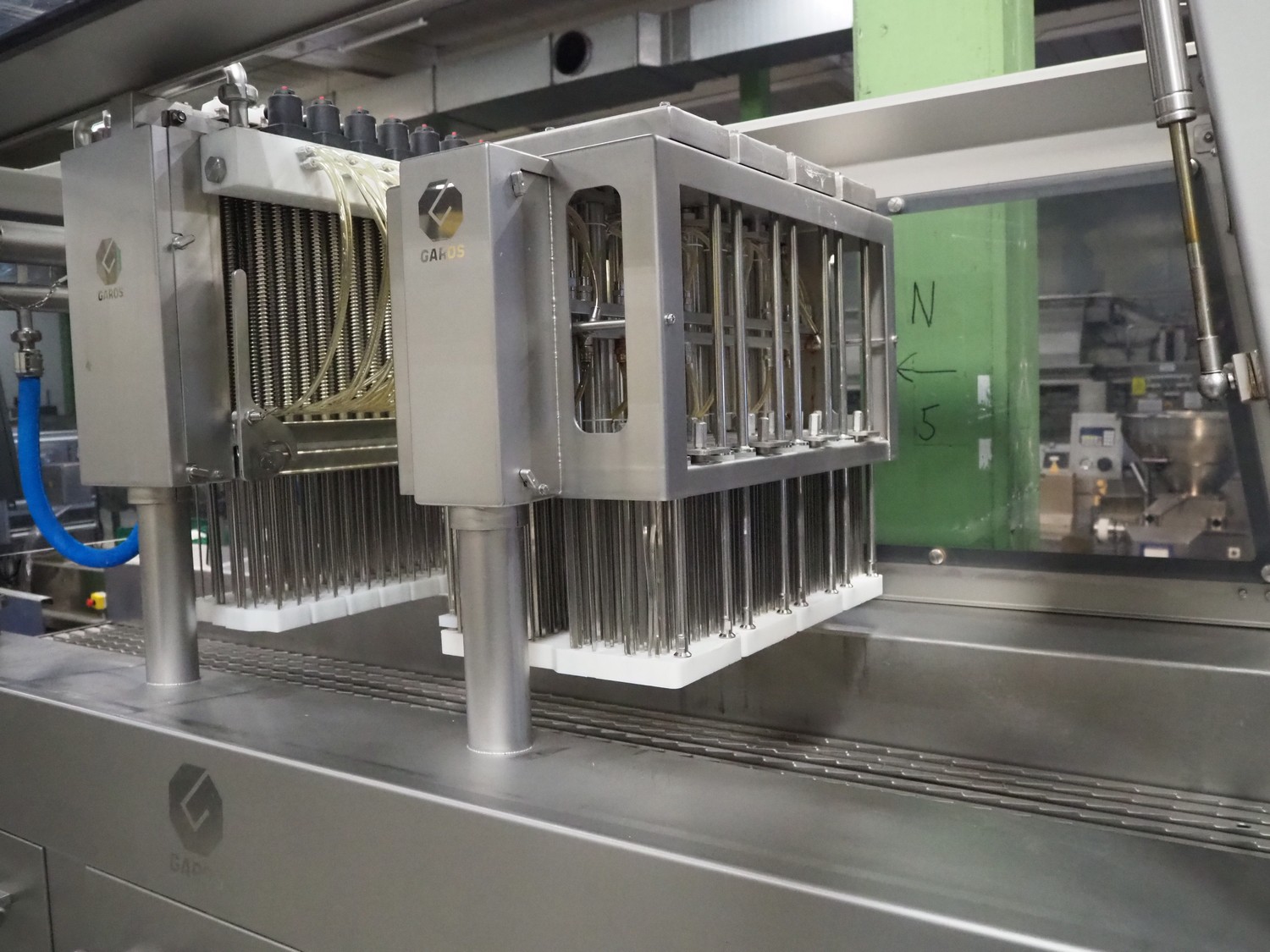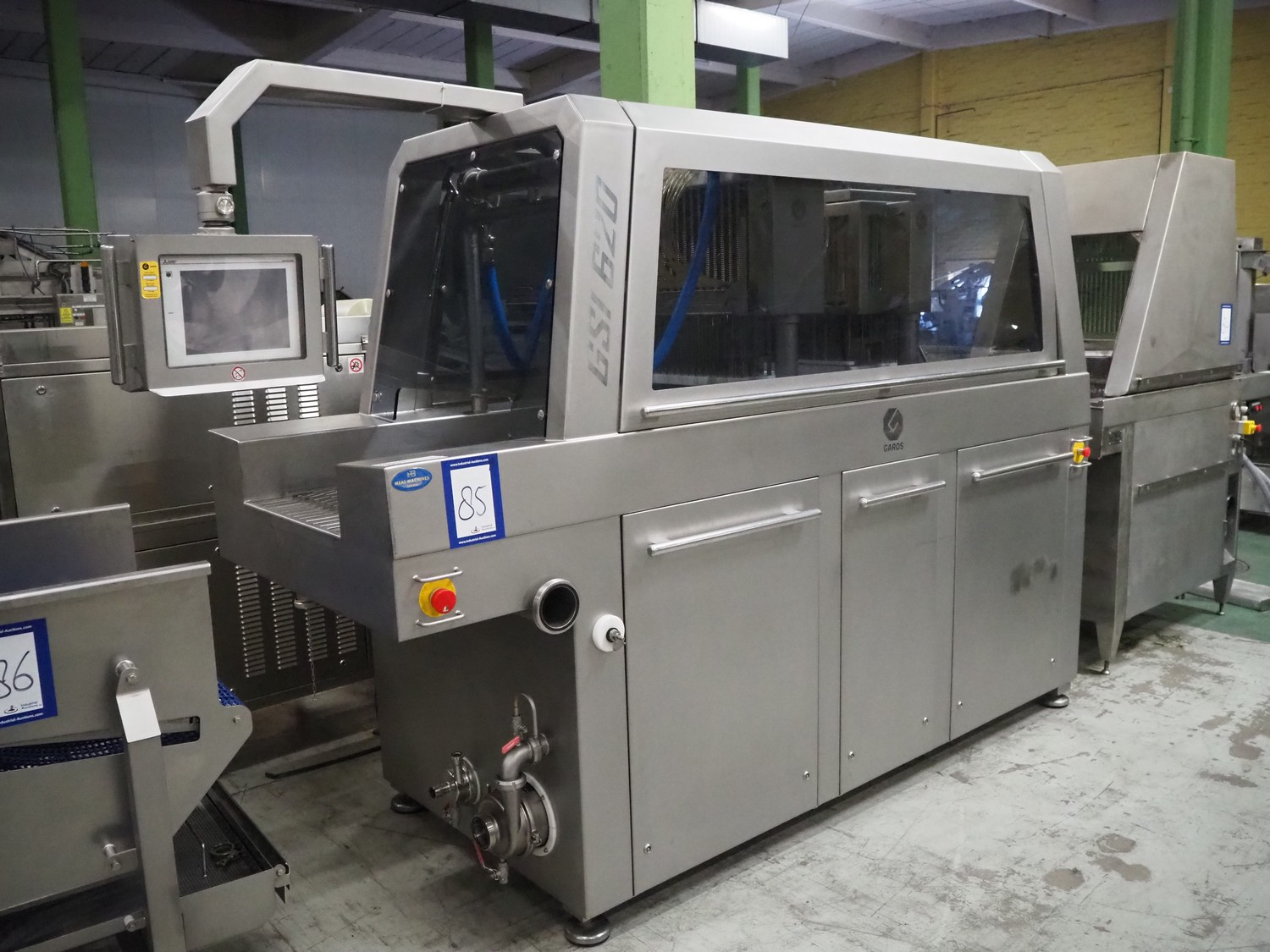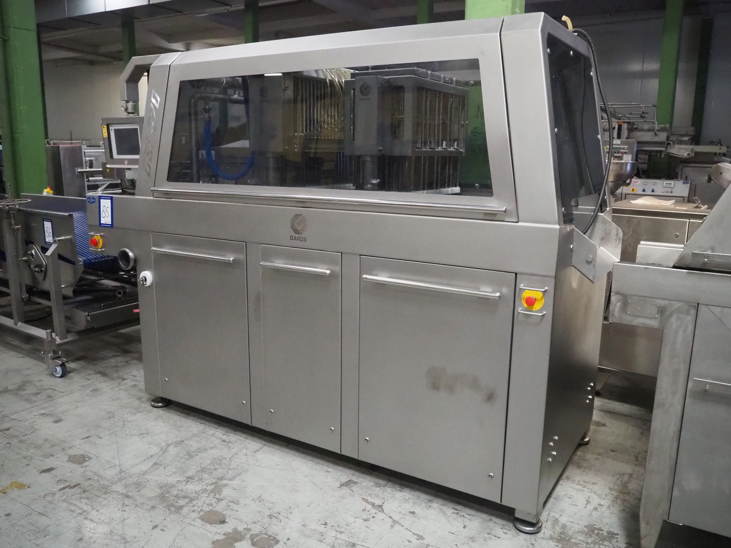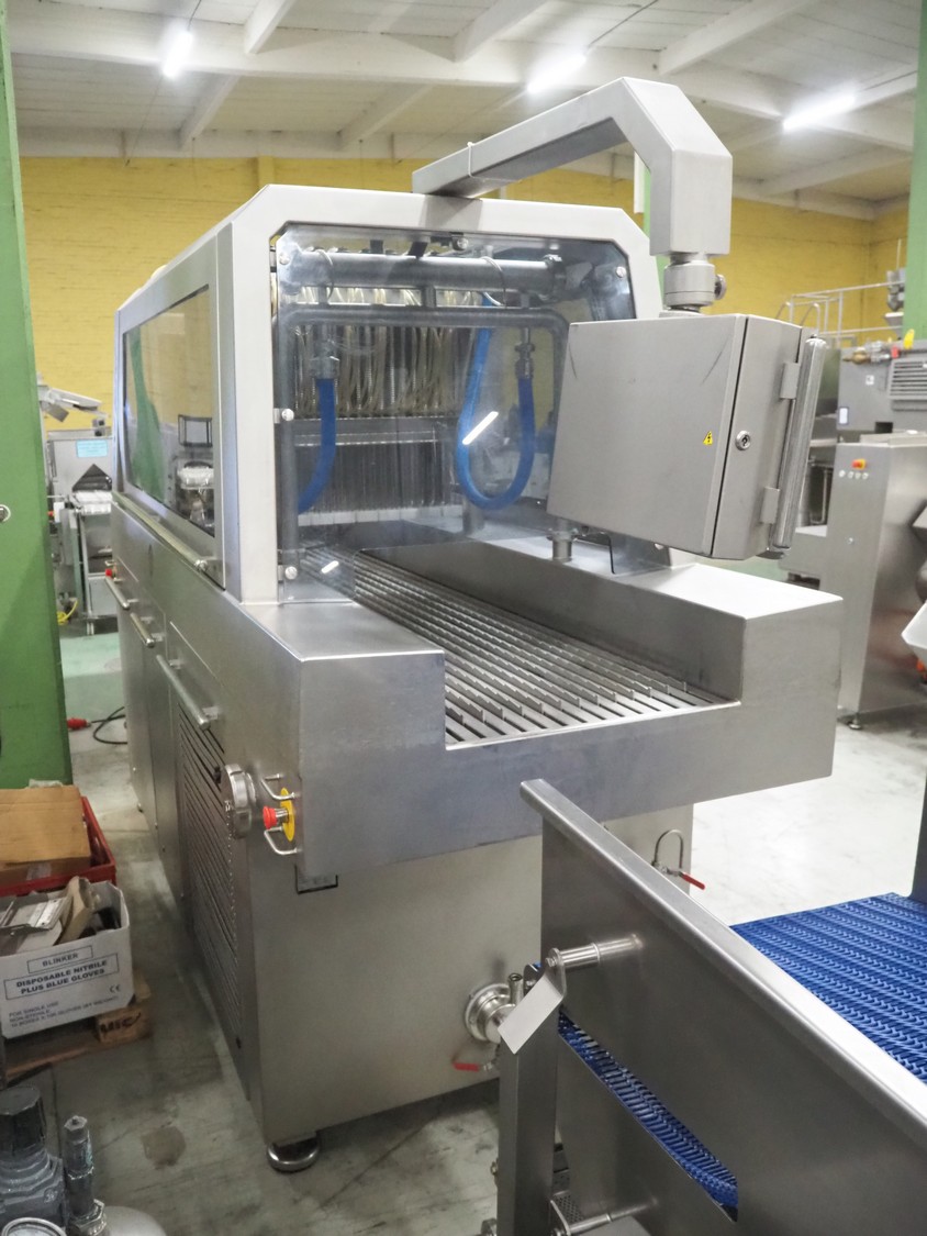 AB Garos injector/tenderiser, type: GSI 620 CWP, serial number: 11060610.30053, year of construction: 2014, 400 V, 3 Ph, 50 Hz, 25 A, 12 kW, machine weight: 1680 kg, s/s walking beam, walking beam width: 620 mm, clearance: 620 mm x 280 mm, 144 needles, diameter needles: 5 mm, total dimensions: 3100 mm x 1250 mm x 2250 mm. Including s/s mobile filter tub, dimensions filter tub: 1800 mm x 860 mm x 1220 mm.