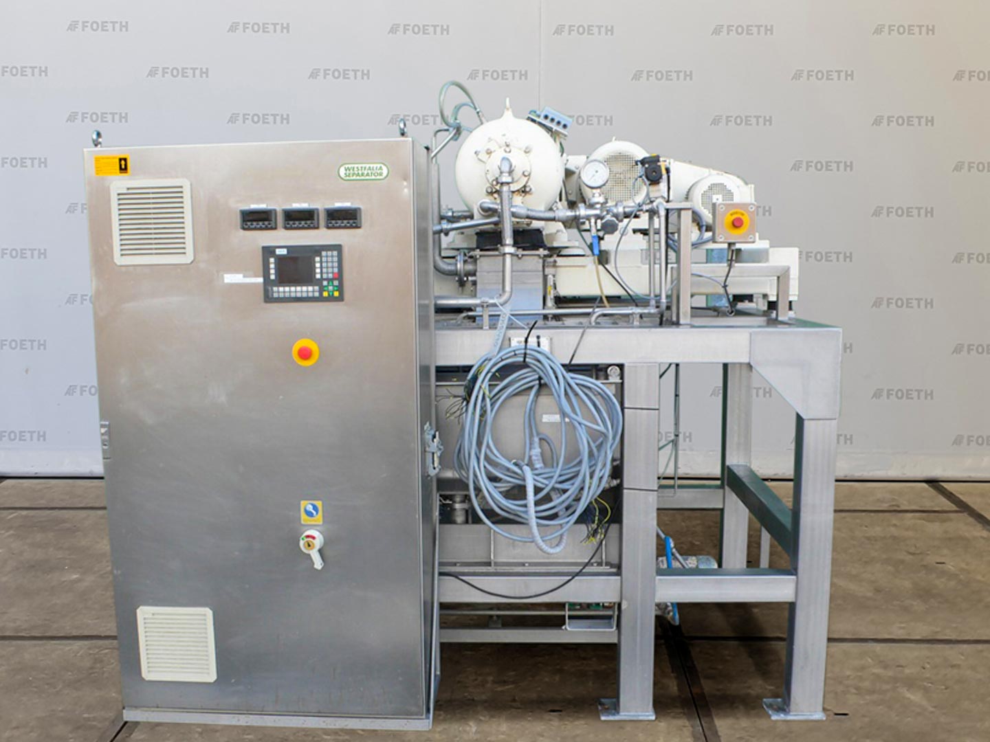 General SKU075B490 MakeGEA Westfalia Separator AG TypeSCA 220-02-33 No.8001 242 Year of construction1998 Mounted on framecheck Main Features MaterialStainless steel Motor15 KW Specified Features - Decanter DecanterThree phase twin drive decanter (1x) 3-Phase decantercheck Screw diameter220/125mm Motor15 kW, 400Volt + 4,0 kW, 400Volt With variable speed drive(2x frequency inverter) Max. rotor speed2700-5500 Rpm MaterialStainless steel Information LocationBarneveld With switchgearcheck Floorspace2,4x2,4 m Total height2,3 m Weight2800 kgDiscountDecantersGEA WestfaliaDiscountCentrifuges > DecantersBrand > GEA Westfalia What you can expect from Foeth: -- Machine is in working condition -- At a reduced price compared to new -- Ready for shipping to any destination worldwide -- You are welcome to inspect the machine in Barneveld, The Netherlands. Please visit us in Barne ...