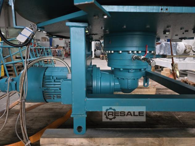 Circular screen feeder with a maximum filling volume of 1,000 l.; Motor power spread arm: 15 kW; Motor power turntable: 0.55 kW. Container diameter: 1200 mm; Plate diameter: 1600 mm; Hopper diameter at the top: 1400 mm. Discharge height: Approx. 730 mm; Screen height: 300 mm / Perforations: 30 x 15 mm (oval).