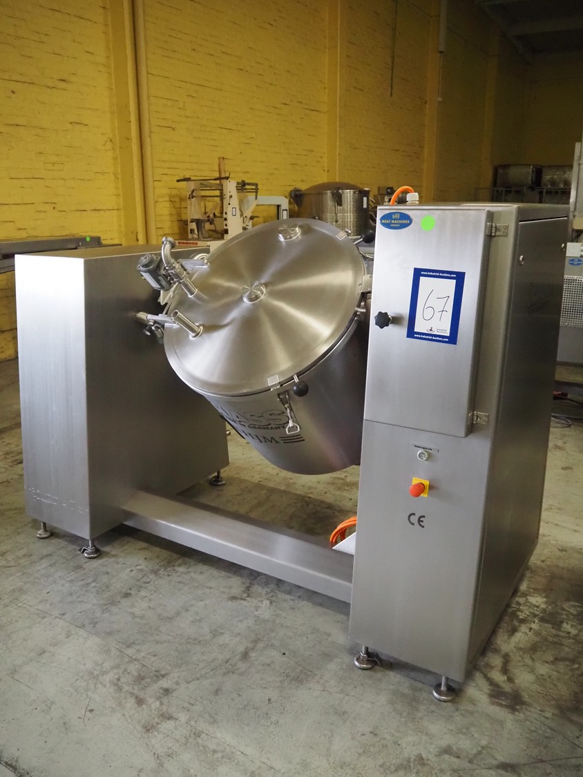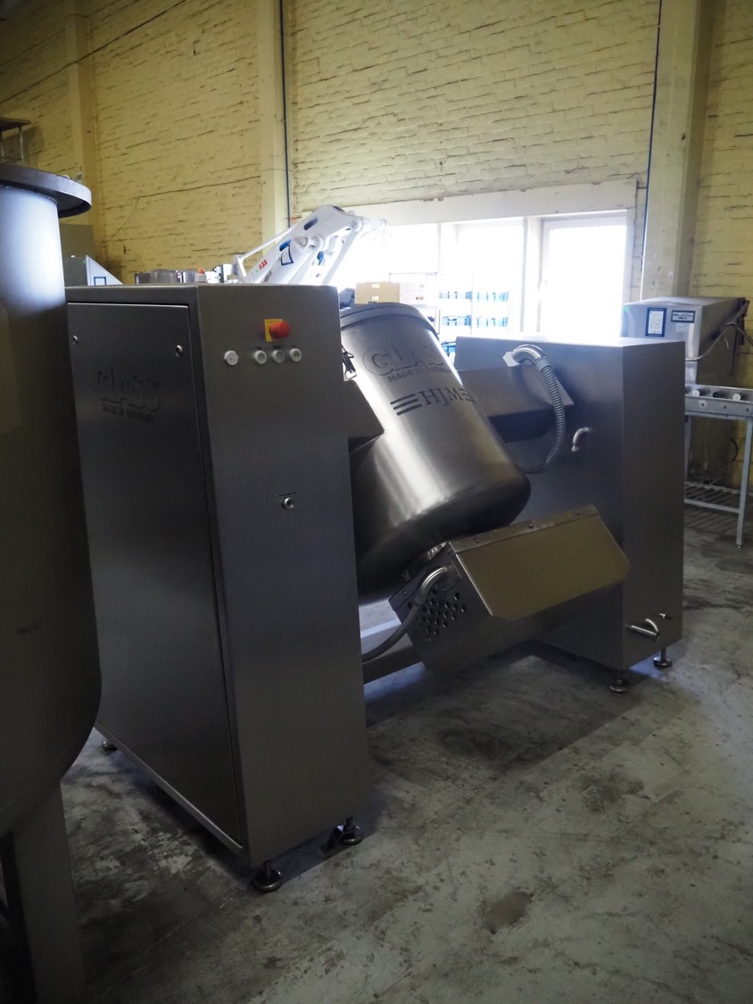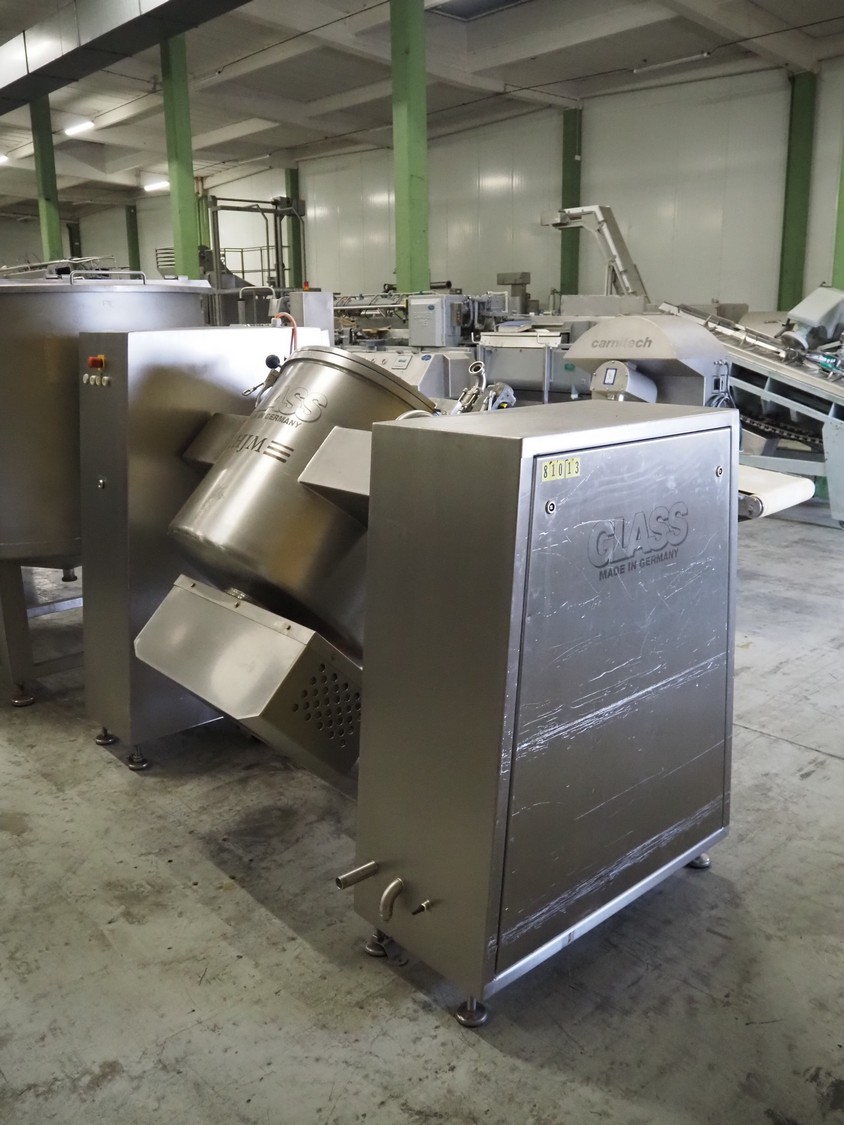 Glass VSM150 Mixer Serial: 2941 150Kg glass mixer, tilting for discharge, stainless lid and sight hole. For marinating and massaging the meat and mixing of liquid, semi-solid and powdery products, with easytouch interval switch for 10 programmes with timer and rest settings, with ,manual, mobile, 3Ph
