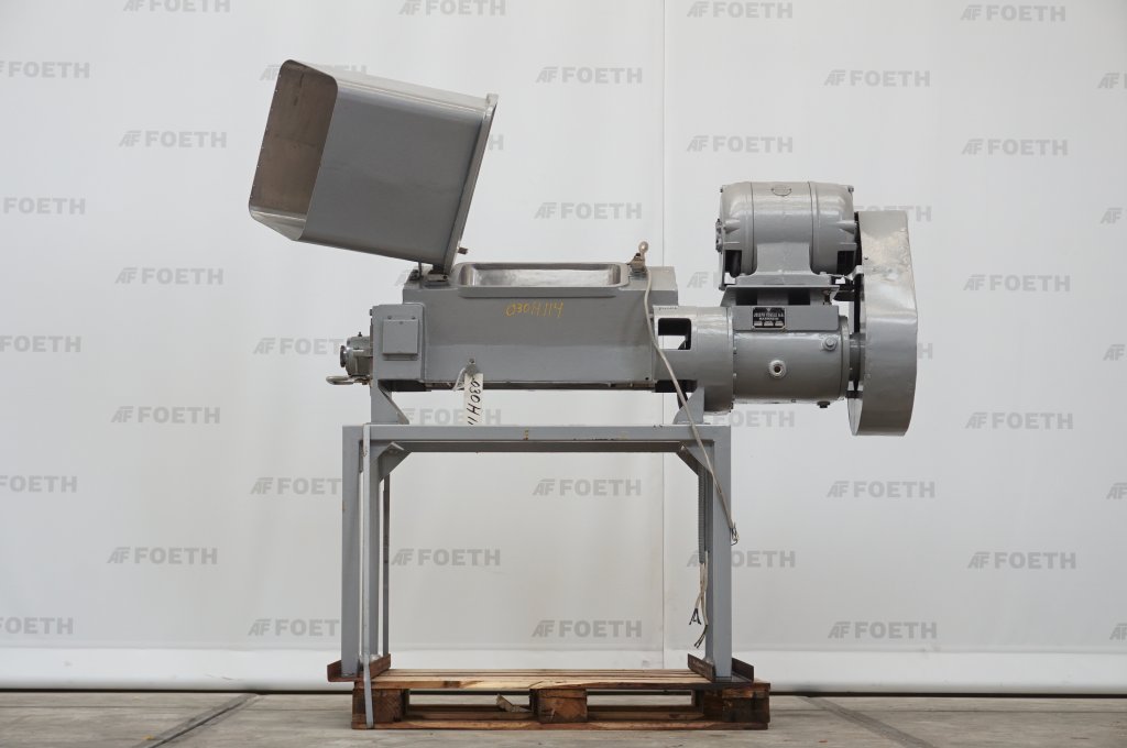 General SKU026N542 MakeTria (It) Type400/ELR No.33.0441.85 Mounted on framecheck Main Features Motor15 KW Inlet diameter400 mm Width420 mm Specified Features - Granulator MaterialMild steel Granulatorcheck Rotor width420mm Rotor diameter400mm Open rotorcheck Number of rotor knives3 Number of stator knives:2 With hoppercheck Inlet500x300mm Hinged topcheck Motor15 KW, 380 Volt Information LocationBarneveld With switchgearcheck Floorspace1,9x1,2 m Total height2,2 m Weight1300 kg Extra Specifications- OVERHAULED - Sieves included: 10 mm, 12 mm, 16 mm GranulatorsDiscountTriaMills > GranulatorsDiscountBrand > Tria What you can expect from Foeth: -- Machine is in working condition -- At a reduced price compared to new -- Ready for shipping to any destination worldwide -- You are welcome to inspect the machine in Barneveld, The Netherlands. Please visit us in Barneve ...