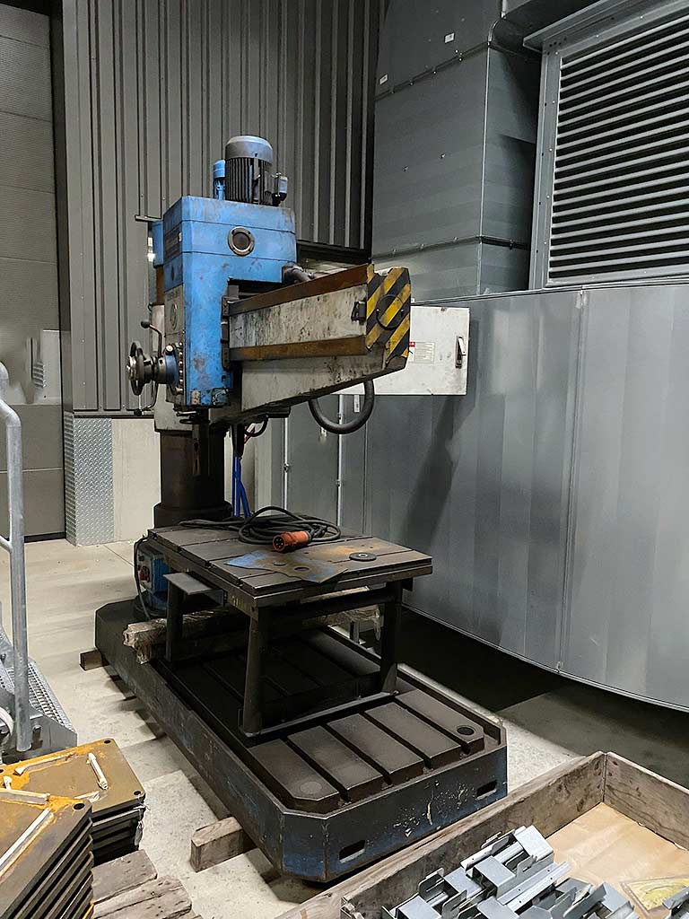 Various metalworking machines, including a larger Wagner radial drilling machine, are available. 1) Column radial drilling machine Wagner PRC 50, year of manufacture: 2011, drilling capacity (steel): 50mm, spindle stroke: 315mm, outreach range: 350mm-1600mm, spindle-base plate distance: 370mm-1270mm, speed: 2000rpm, machine dimensions X/Y/Z: approx. 2500mm/1100mm/2900mm, weight: approx. 3500kg. The machine has an unknown defect. 2) Column drilling machine Alzmetall AX3/SV, year of manufacture: 2000, drilling capacity (steel): 32mm, spindle stroke: 120mm, outreach: 293mm, column diameter: 115mm, table dimensions X/Y: 515mm/360mm, speed: 2250rpm, weight: approx. 300kg. 3) 2x metal circular saw Macc NTM 350, year of manufacture: 1998/2010, saw blade diameter: 350mm, cutting capacity: 120mm, weight: approx. 450kg. 4) Belt grinding machine Grit A/S GIS 150, year of manufacture: 2014, belt dim ...
