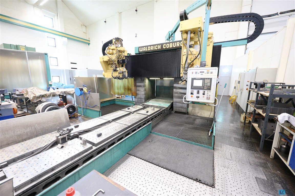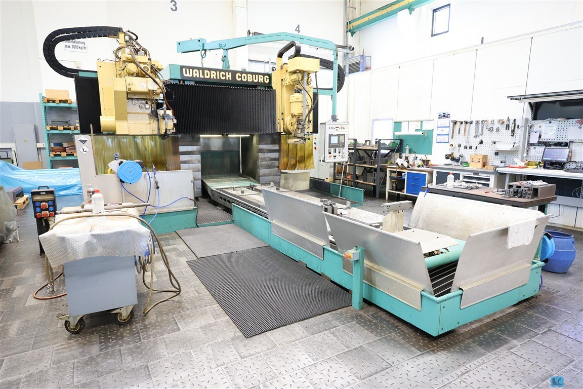 grinding length:4000 mm grinding width:1450 mm workpiece height:1250 mm total power requirement:40 kW dimensions of the machine ca.:12,3 x 6 x 4,8 m distance between columns:1460 mm table surface area:4000 x 1250 mm max. workpiece weight:11.000 kg cross rail adjustment:1250 mm table feed:1- 45 m/min .machine is in top condition for high precision work! with CNC SIEMENS 840 D 1 universal grinding head, 7,5 kW swivelling of the grinding spindle +/-110° grinding wheel dimension 500 x 60 mm vertical stroke 350 mm with dressing unit 1 surface grinding head, 22,5 kW grinding wheel dimension 600 x 100 mm vertical stroke 150 mm with dressing unit 6 magnetic plates on the table diverse grinding wheel flanges