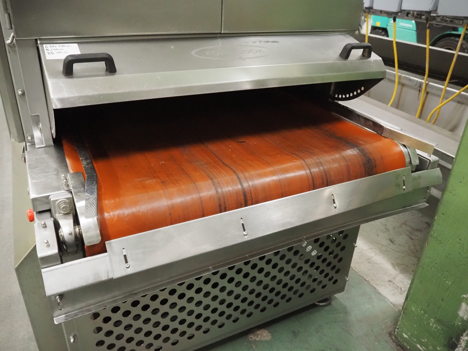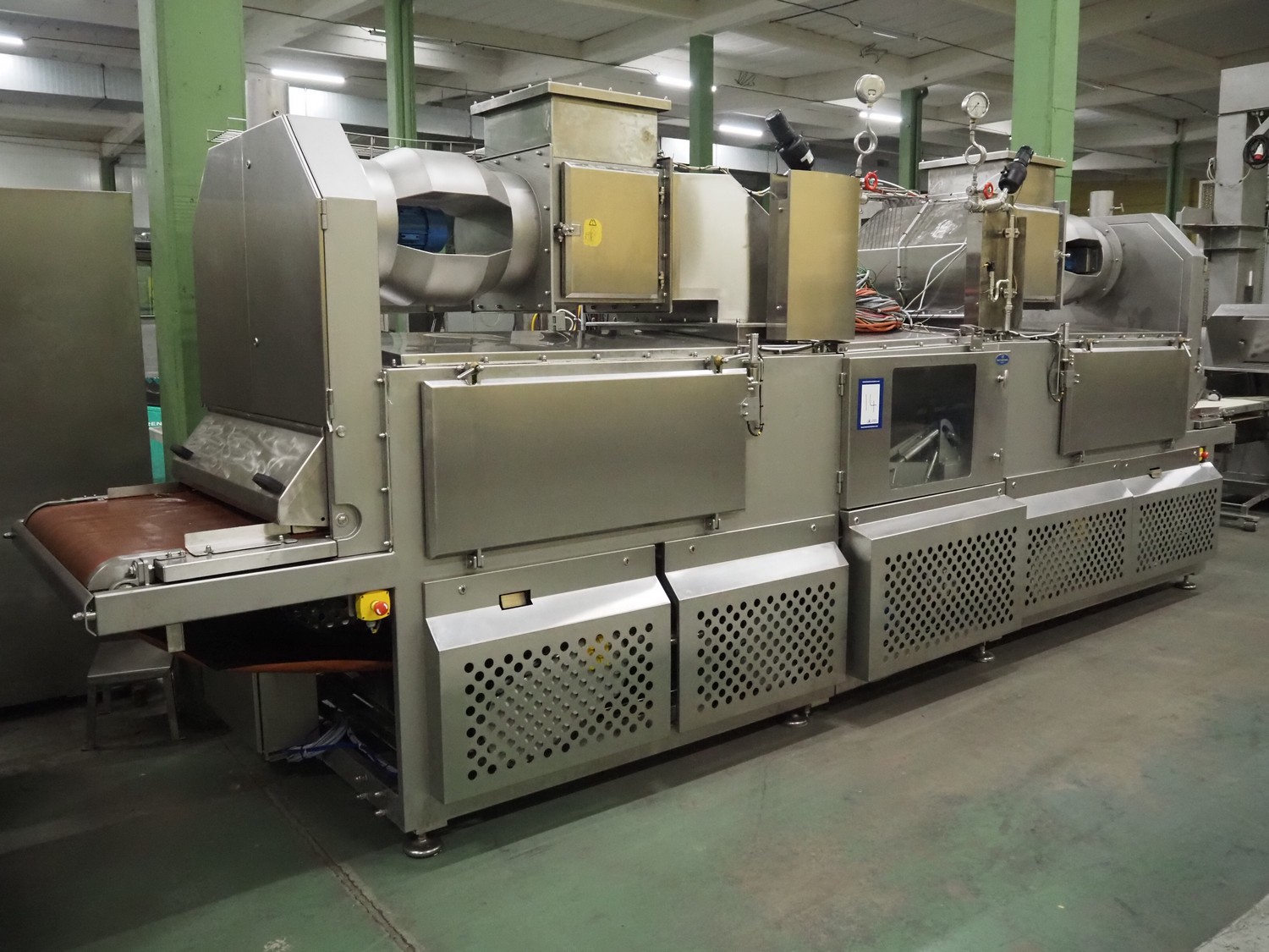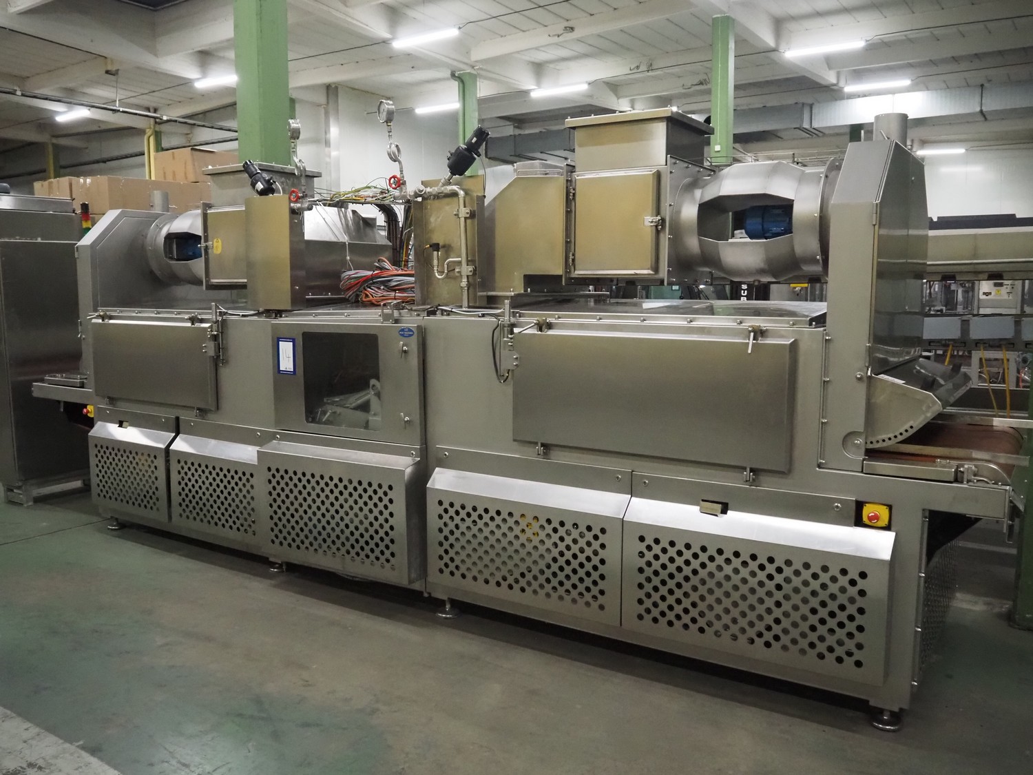 Formcook AB industrial combi cooker, model: COMBI 1025 0802 EF, year of construction: 2006, Teflon belt, belt width: 980 mm, s/s mesh belt, belt width: 1020 mm, total dimensions: 6300 mm x 1500 mm x 2500 mm, s/s switch cabinet, dimensions: 1600 mm x 400 mm x 2000 mm.