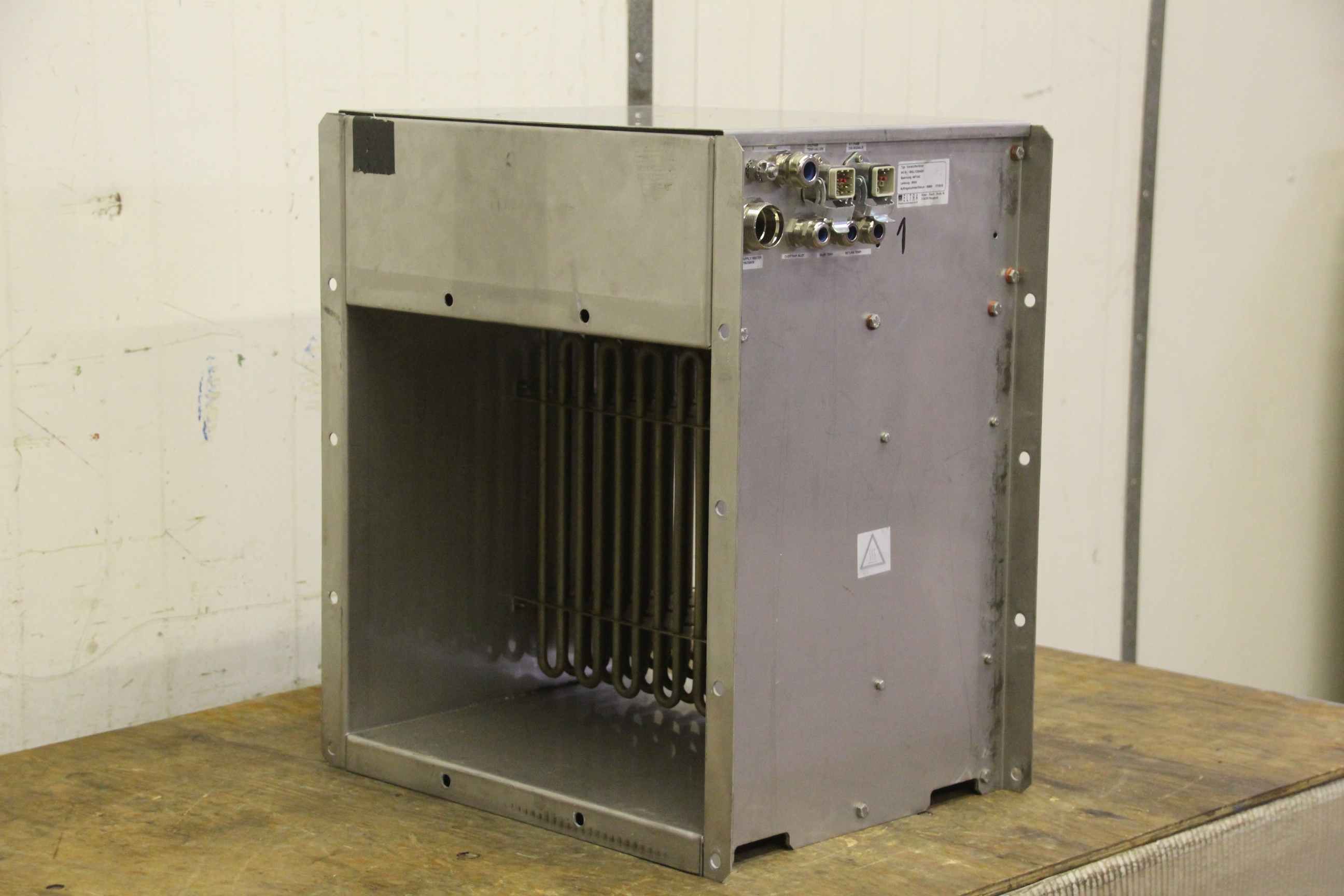 Fan heater, electric heater, heater, electric heater, electric fan heater, heat exchanger, air heater, air heater, duct air heater, duct air heater -Eltra item no.: 1BGL1CE04001 -Power: 30kW -Voltage: 467VAC -Dimensions: 460/350/H535 mm -Weight: 23kg