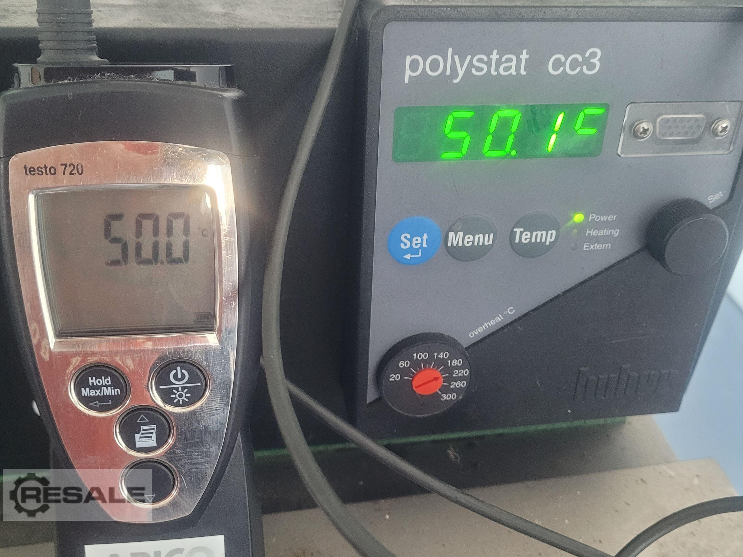 HUBER CC303 Polystat CC3 Bath and Circulation Heating Thermostat CC 303 Circulation Water Bath with CC3 Thermostat Working temperature: 55...300°C with cooling device: -20...300°C Dimensions (W x D x H): 335 x 382 x 433 mm Net weight: 22 kg Max. delivery power: 25 l/min; 0,7 Max. suction power: 18.5; 0.4 bar This model has been replaced by the CCx-315B vpc model