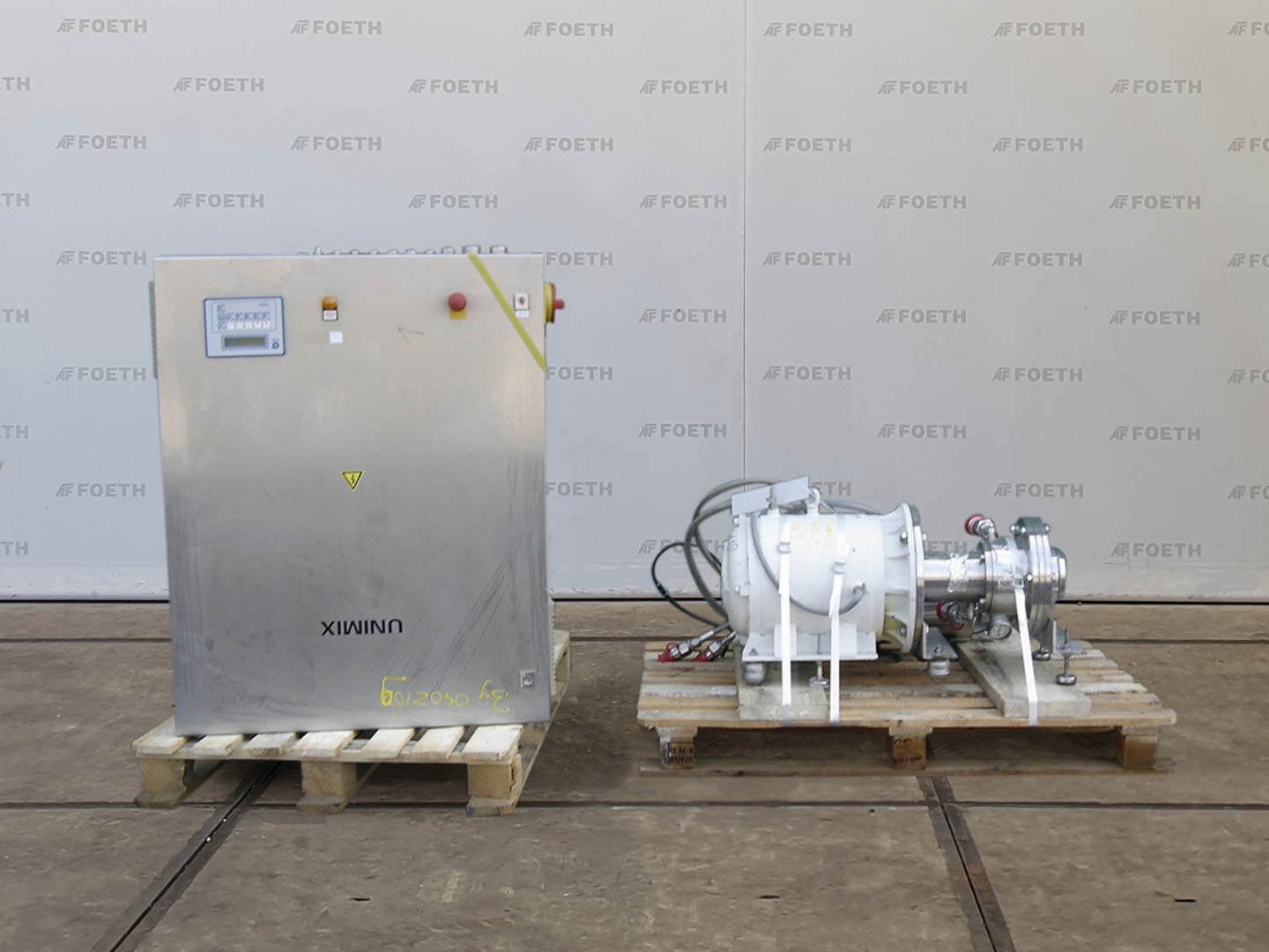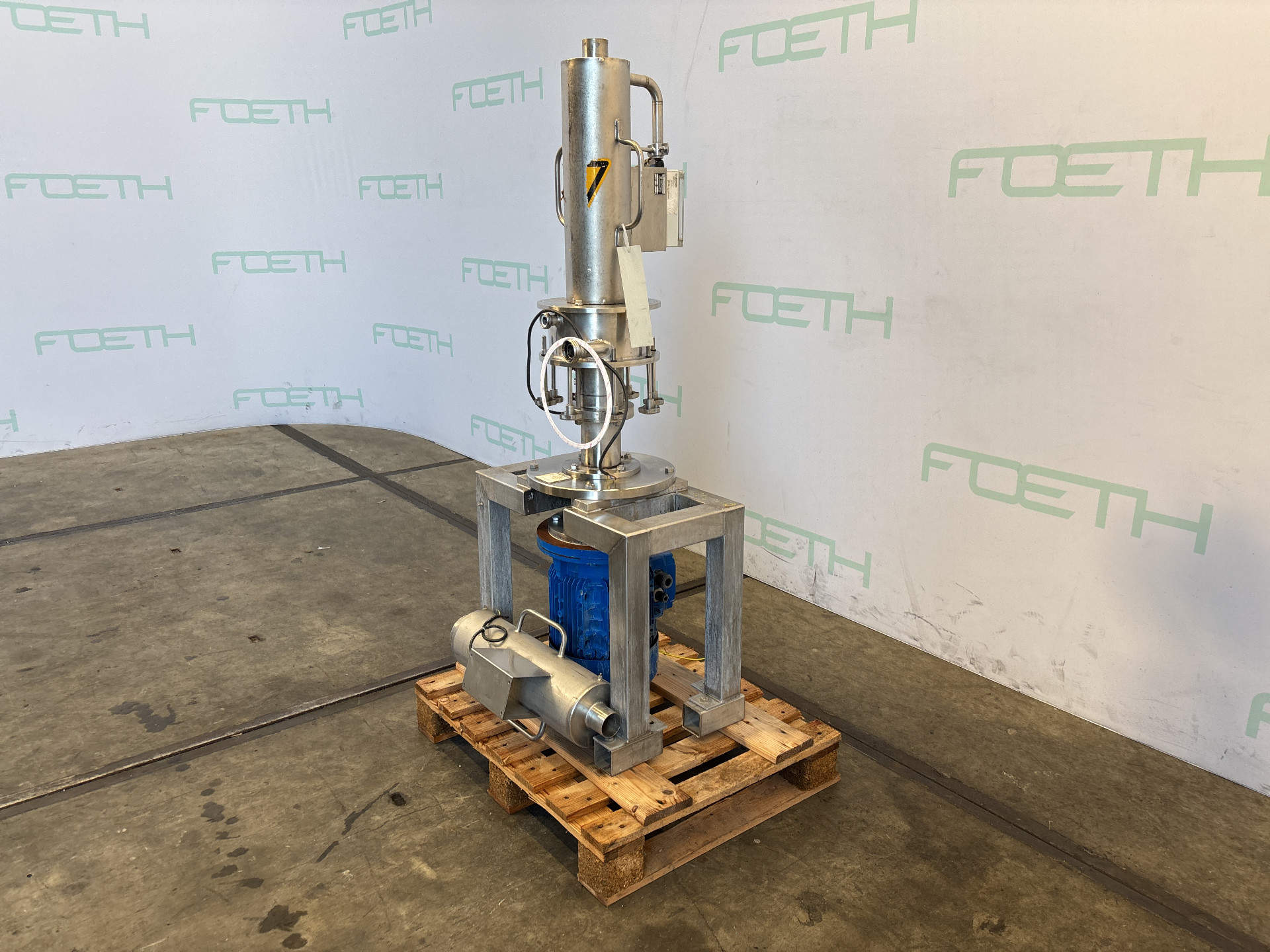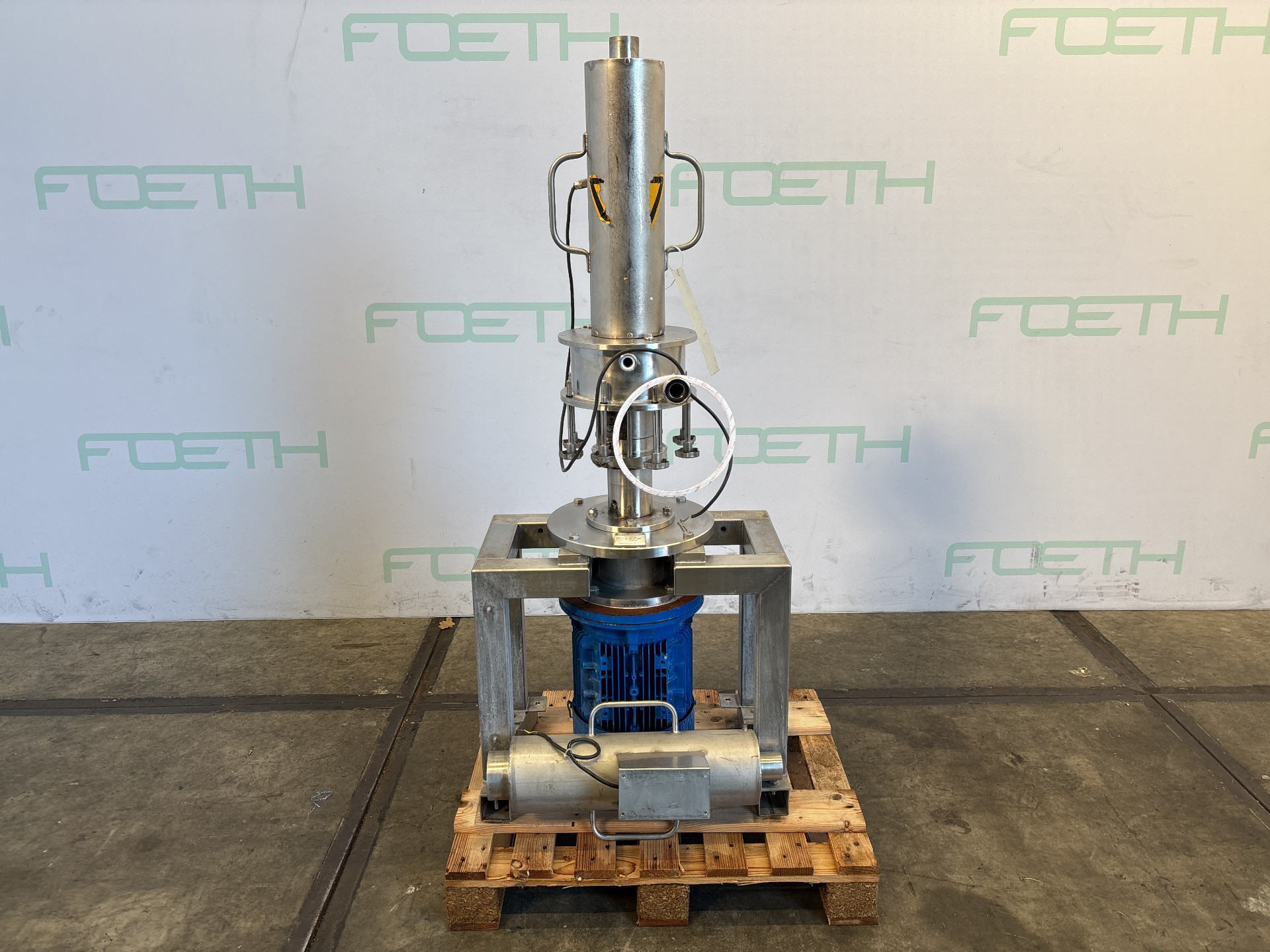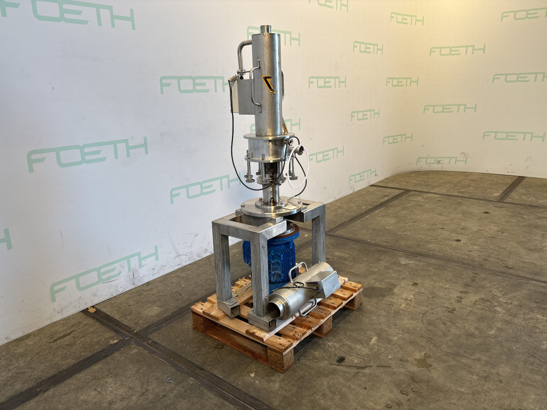 General SKU040Z169 MakeHaagen & Rinau / Unimix TypeSH-500 No.301166/2 Year of construction2002 LocationBarneveld Main Features MaterialStainless steel Motor22 KW Rotor150 mm Specified Features - Inline mixer Continuous reactorcheck In-line homogeniser Rotor sizesø 150 x 150 mm Inlet120 mm Outlet75 mm Number of stages:3 Capacitymax. 36 m3/h With mechanical sealcheck Motor22,0 KW, 400 Volt With frequency controllercheck Rotor speed2900 rpm MaterialStainless steel 1.4306 (304L) Information With switchcheck With switchgearcheck Floorspace0,8 x 0,5 m Total height0,5 m Weight300 kg CEcheck Extra Specifications- mirror polished rotor and stator - stator with mechanical seal Inline high shear mixersDiscountHaagen & RinauMixers > Inline high shear mixersDiscountBrand > Haagen & Rinau What you can expect from Foeth: -- Machine is in working condition -- At a reduced ...