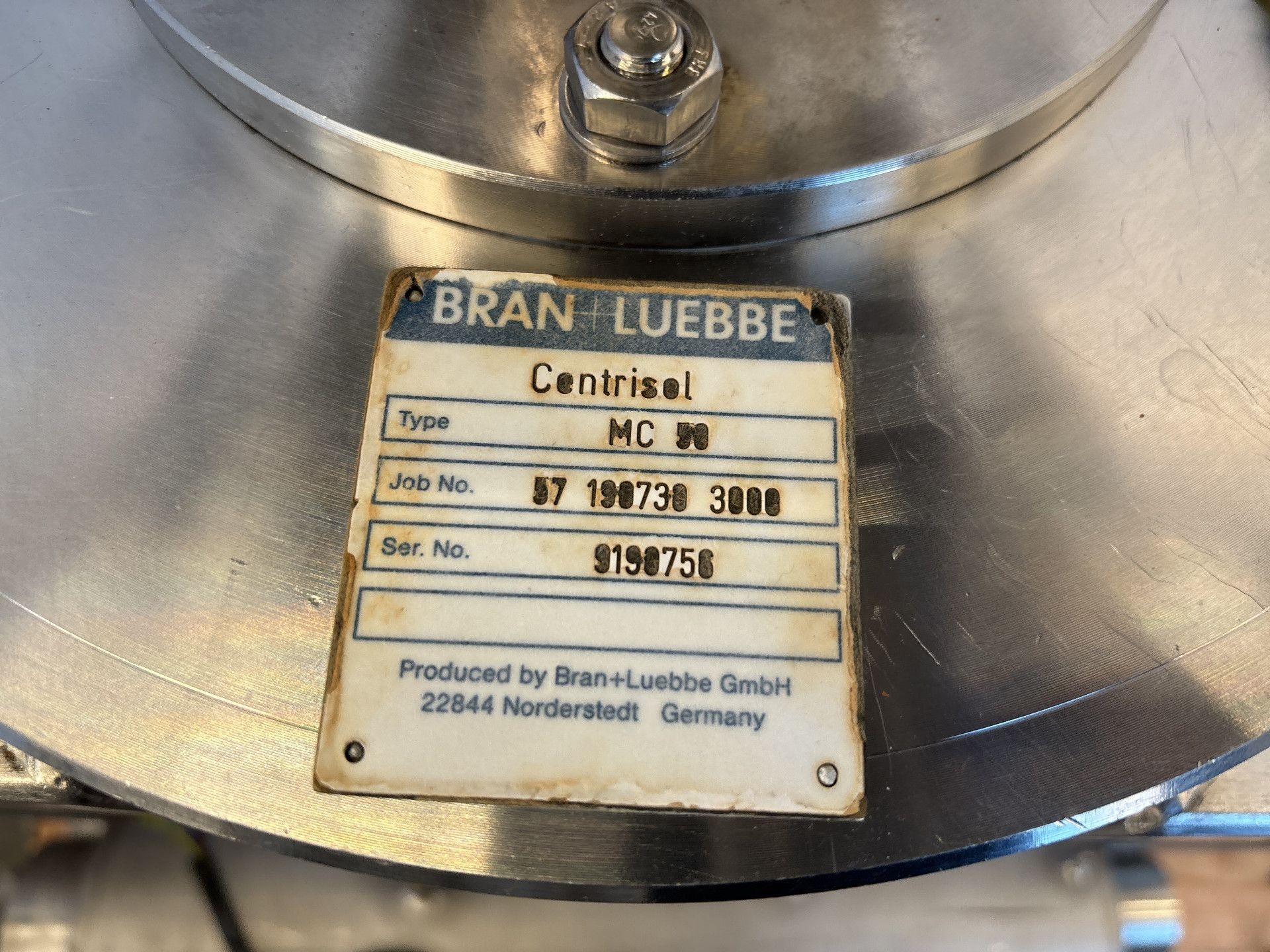 General SKU022A121 MakeBran + Luebbe TypeCentrisol MC-50 No.9190756 Year of constructionunknown Mounted on framecheck Main Features MaterialStainless steel Motor7.5 KW Rotor160 mm Specified Features - Inline mixer Continuous reactor(1x) Rotor sizesdia. 160mm, Mixing chamber dia. 200mm Inletdia. 50mm Capacitymax. 500 Ltr/Hr Motor7,5 KW, 400/690 Volt Rotor speed2915 Rpm Electric heating(330 Watt, 220 Volt, Max. 200 Degr. C.) MaterialStainless steel 1.4552 Information LocationBarneveld Floorspace0,6 x 0,4 m Total height1,5 m Weight150 kg Technical specs Extra informationmixing chamber dia. 200 mmInline high shear mixersDiscountBran + LuebbeMixers > Inline high shear mixersDiscountBrand > Bran + Luebbe What you can expect from Foeth: -- Machine is in working condition -- At a reduced price compared to new -- Ready for shipping to any destination worldwide -- You ar ...