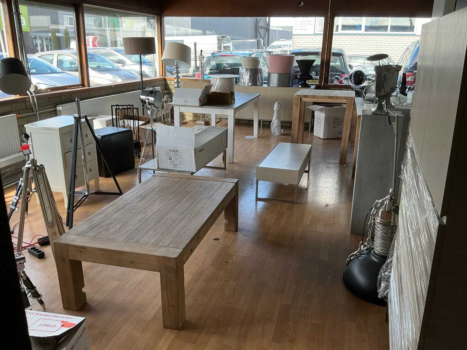 Consisting of various types and sizes of tables, dresser, cabinets, lamps and lampshades, stove, chairs, rug, vases, suitcases, bench Auction-ID: A1-43823-352