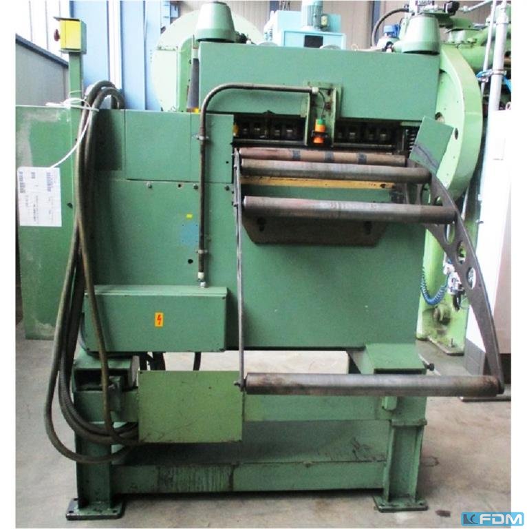 material width:600 mm material thickness: - 4,0 mm no. of straightening rolls:21 straightening roll diameter:30 mm material cross-cut:1800 mm² speed:6 - 36 m/min Power capacity:4,5 kW Weight:2,0 t Dimensions (WxDxH):1,5 x 2,0 x 1,9 m