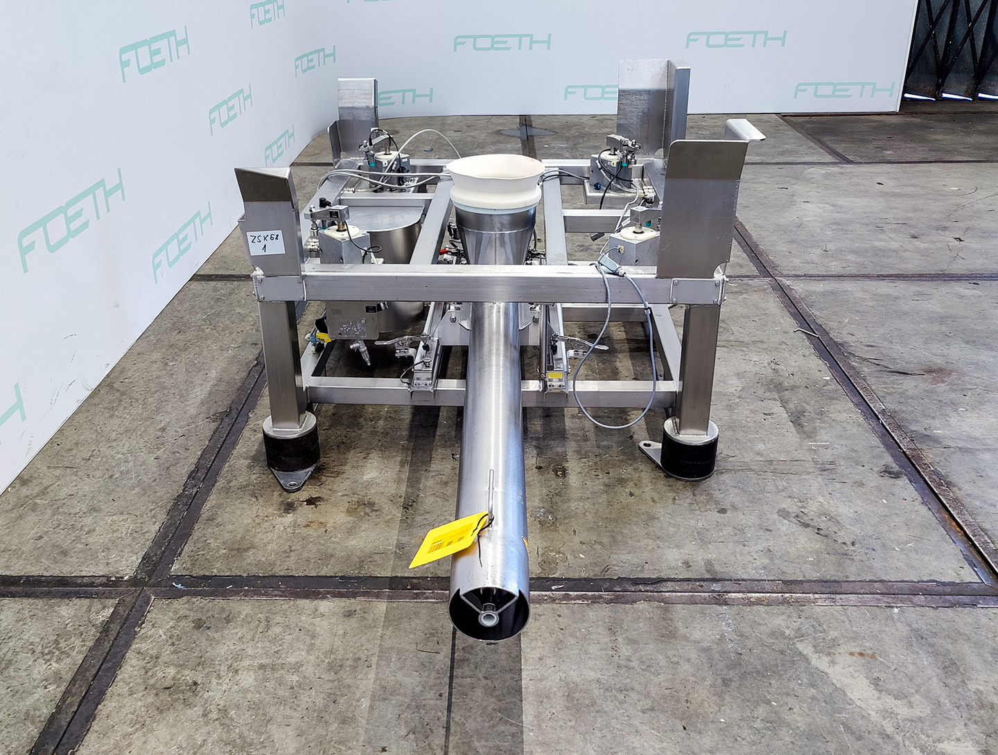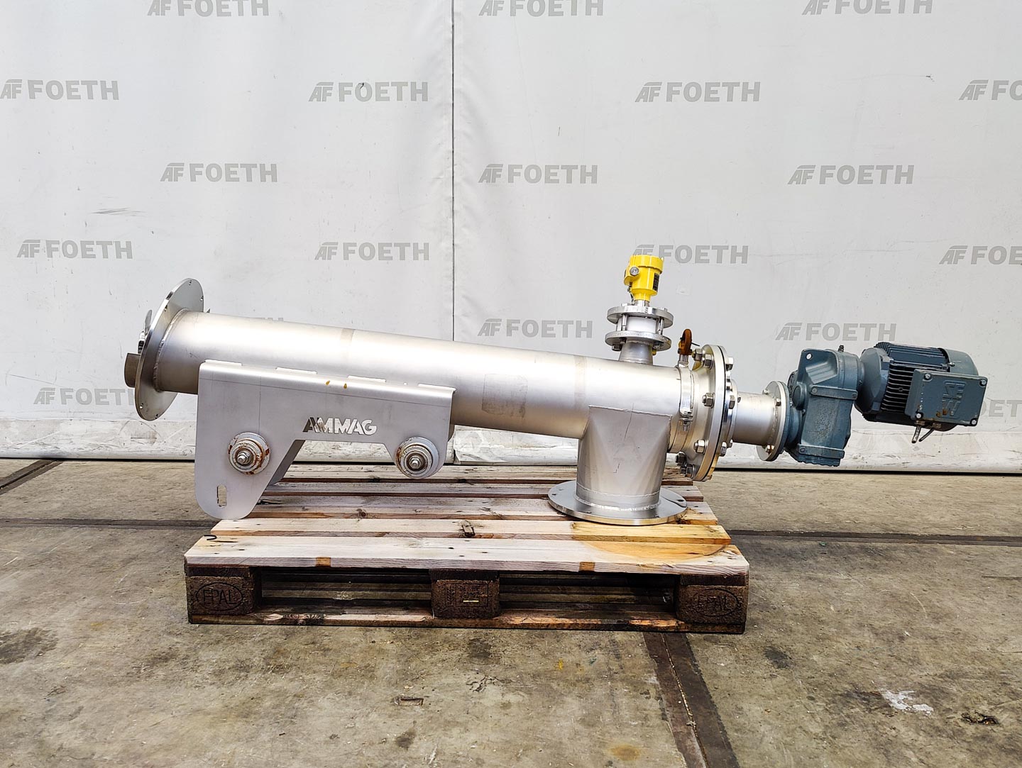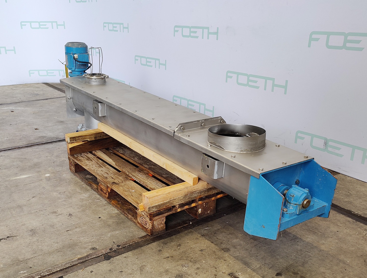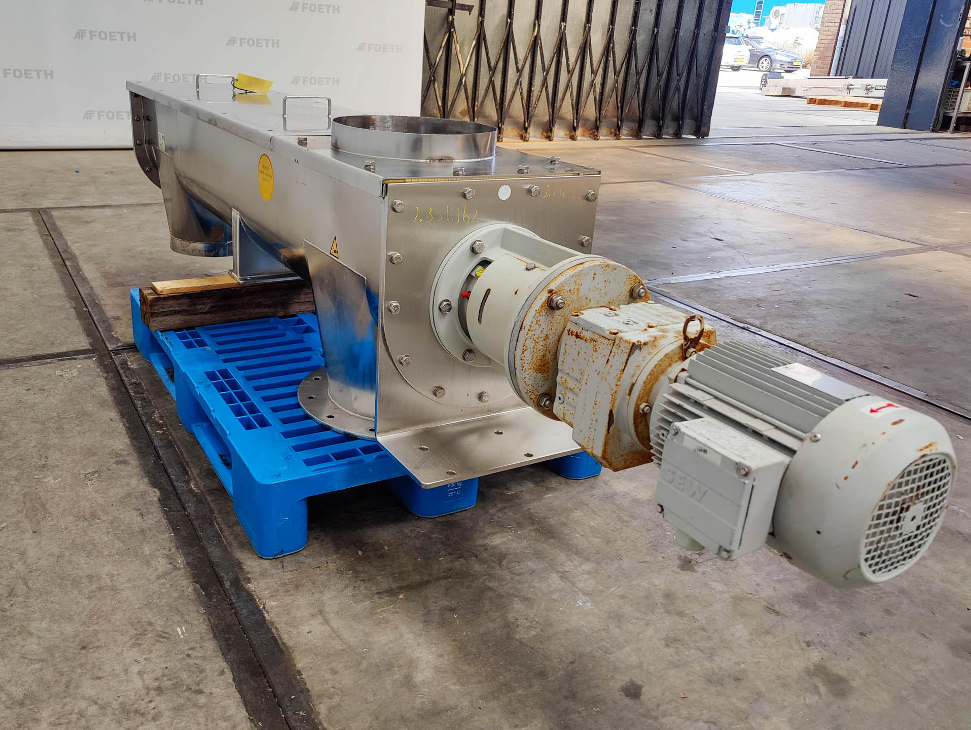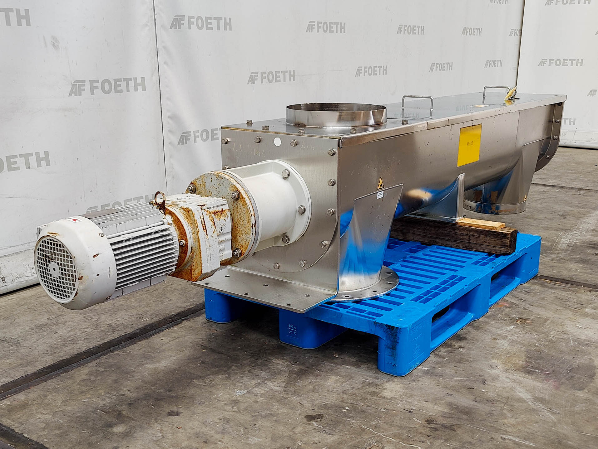 General SKU235K162 MakeAZO GmbH + Co. Osterburken TypeTrogschnecke TFS-315 G B A21 Mach.No.408691 Year of construction2004 Main Features Motor2.2 KW Length2000 mm Inlet diameter315 mm Specified Features - Horizontal screw conveyor MaterialStainless steel Horizontal conveyor screw(1x) Trough-typecheck Diameter315mm Length2000mm Between inlet and outlet± 1450mm Shaft diameter90mm Pitch145/290mm Inletdia. 250mm Outlet2x dia. 300mm Motor2,2 KW, 230/400 Volt Screw speed± 76 Rpm With coverscheck Information LocationBarneveld Floorspace2,9x0,5 M Total height0,6 M Weight260 KGTea, herbs & coffeeFine chemicalsStarchOther chemicalRubberBiotechnologyHorizontal screw conveyorsAgrochemicalsSpicesPlastic & polymersCatalysts & fillersFeed additivesPaper & otherSolventsDetergent & surf.Other pharmaceuticsCosmeticsOrganicsE-waste & metalFood additivesSugarLubricants & oleoD ...