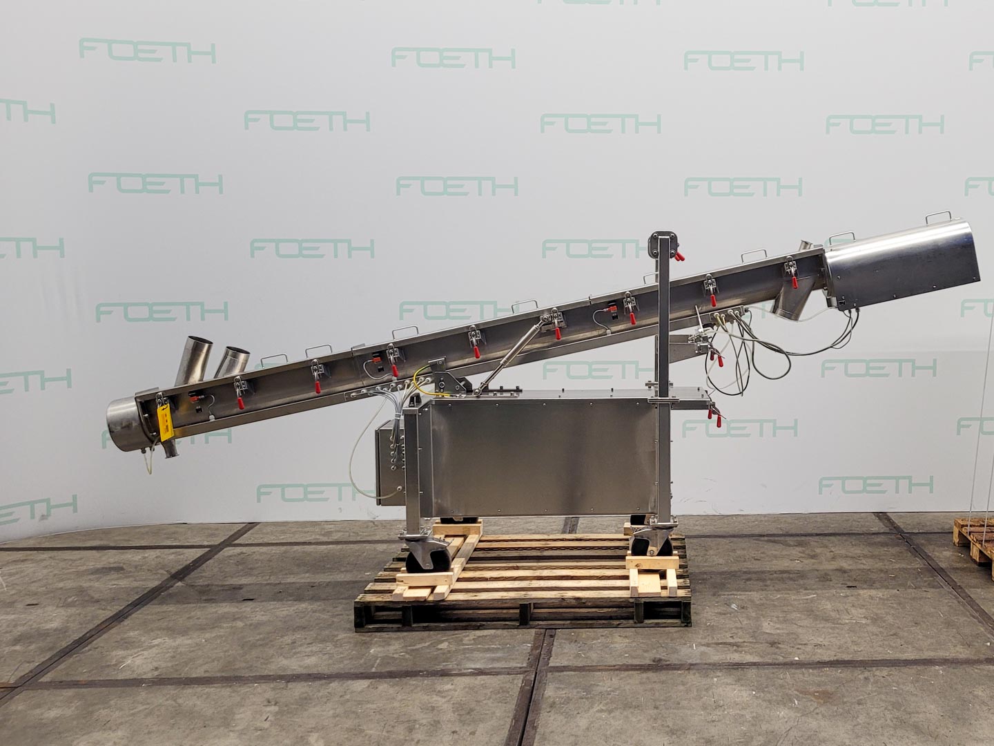General SKU244U280 Makeunknown: missing type plate LocationBarneveld Main Features Motor1.5 KW Length2340 mm Inlet diameter100 mm Specified Features - Horizontal screw conveyor MaterialStainless steel 1.4552 Horizontal conveyor screwcheck Trough-typecheck Diameter90 mm Length2340 mm Between inlet and outlet2000 mm Shaft diameter60 mm Pitch97 mm Inletdia. 100 mm Outletdia. 125 mm Insulatedcheck Motor1,5 kW 220-240/380-415 Volt Screw speed20-100 rpm Height between in- and outlet500 mm With coverscheck Information Floorspace3,5x0,4 m Total height0,45 m Weight300 kg Extra Specificationsthis conveyor screw served as an inlet for cryogenic grinding Tea, herbs & coffeeFine chemicalsStarchOther chemicalRubberBiotechnologyHorizontal screw conveyorsAgrochemicalsSpicesPlastic & polymersCatalysts & fillersFeed additivesPaper & otherSolventsDetergent & surf.Other pharmace ...