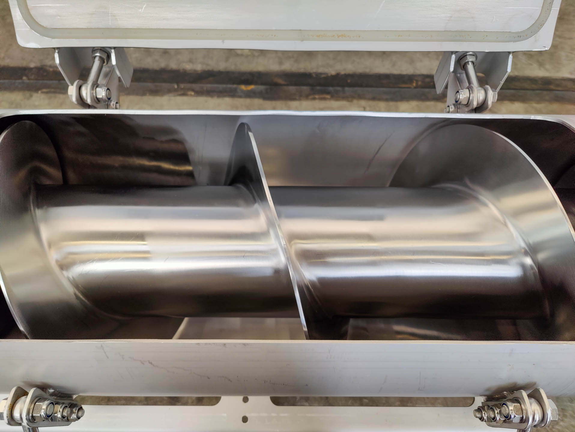 General SKU232U228 Makeunknown: missing type plate LocationBarneveld Main Features Motor0.37 KW Length4500 mm Specified Features - Horizontal screw conveyor MaterialStainless steel 1.4301 (304) Horizontal conveyor screwcheck Trough-typecheck Diameter350 mm Length4500 mm Between inlet and outlet4400 mm Shaft diameter130 mm Pitch93 - 300 mm Inlet160x350 mm Outlet350x280 mm Motor0,37 kW 220-240/380-415 Volt Screw speed9,2 rpm Outlet height1430 mm Height between in- and outlet1030 mm Information Floorspace5,2x1,1 m Total height1,9 m Weight550 kg Extra SpecificationsCapacity: 4256 Ltr/hTea, herbs & coffeeFine chemicalsStarchOther chemicalRubberBiotechnologyHorizontal screw conveyorsAgrochemicalsSpicesPlastic & polymersCatalysts & fillersFeed additivesPaper & otherSolventsDetergent & surf.Other pharmaceuticsCosmeticsOrganicsE-waste & metalFood additivesSugarLubricant ...