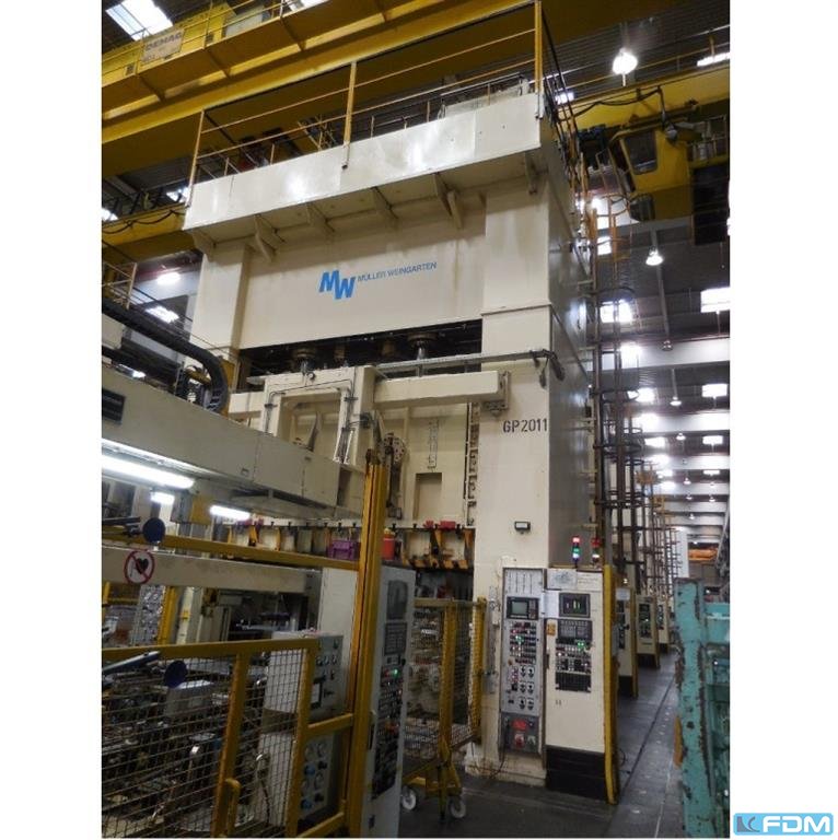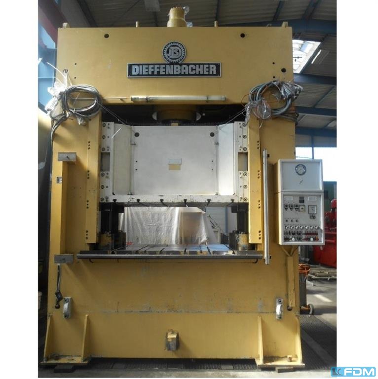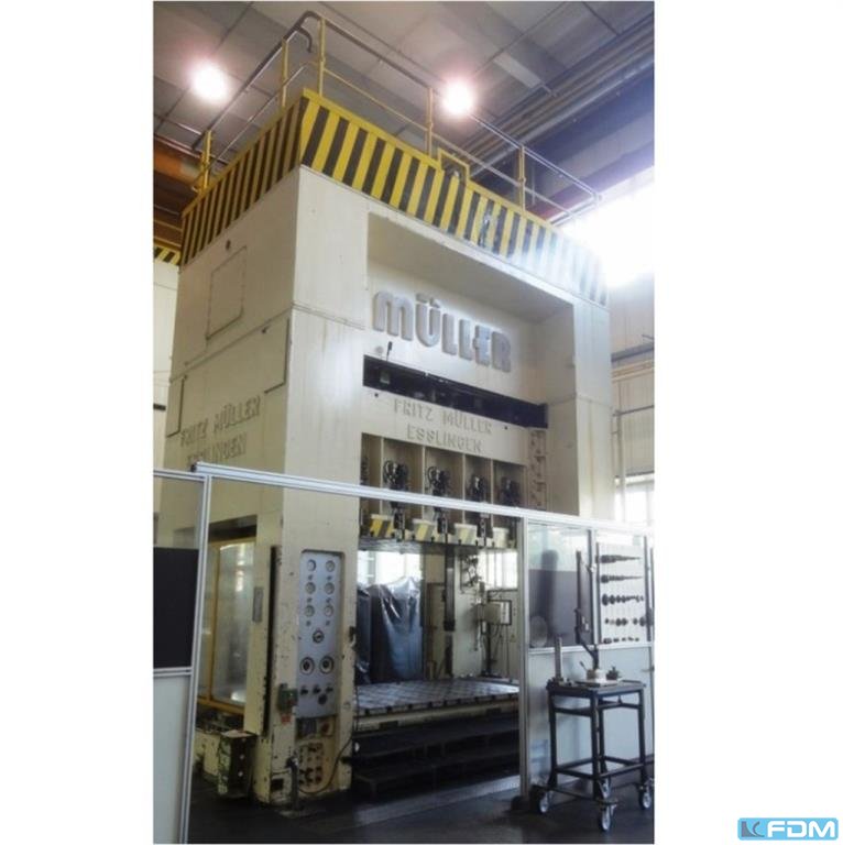 Pressure:1000 t distance between columns:4100 mm stroke:1200 mm Distance table/ram, stroke up:2100 mm Table surface area:4000 x 2200 mm pressure of drawing cushion in table:360 t Die cushion stroke in table:300 mm Die cushion area in table:3500 x 1600 mm Die cushion pressure in ram:100 t Die cushion stroke in ram:160 mm Die cushion area in ram:3250 x 1600 mm Ram surface:4000 x 2200 mm Side window:1300 mm Oil volume:8000 l Power capacity:300,0 kW Dimensions (WxDxH):5,75 x 4,3 x 9,55 m Height above floor:7,7 m die cushion in table:hydraulic, controllable die cushion in ram:hydraulic, controllable cutting impact cushioning:hydraulic