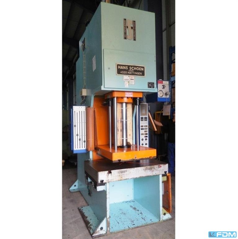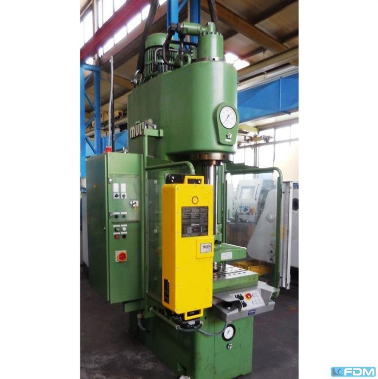 Pressure:40 t throat:330 mm stroke:250 mm distance table/ram, max. stroke up, adjustment up:450 mm table surface area:800 x 500 mm hole in the table:100 mm table height over floor:900 mm ram surface:100 mm Speed down:406 mm/s Speed up:393 mm/s Working speed:14 mm/s oil volume:350 l power requirement:7,5 kW weight:4,6 t dimensions (WxDxH):1,3 x 2,3 x 3,4 m German Safety: permitted for manual loading:CE-sign depth stop:mechanical