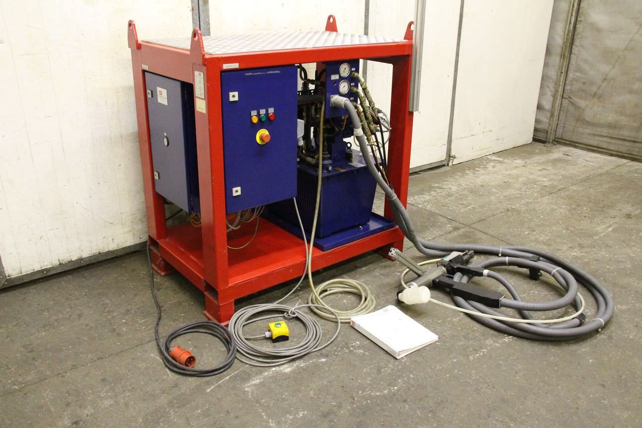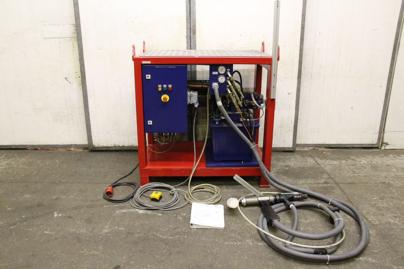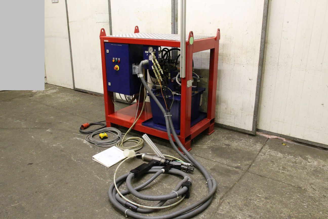 hydraulic lockbolt rivet gun, rivet gun, blind rivet gun -hydraulic lockbolt rivet gun -without: storage container -incl.: hydraulic unit and control -Dimensions: 1230/800/H1300 mm -Weight: 450 kg