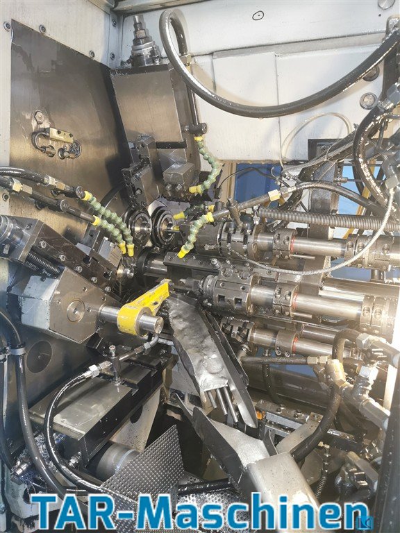 number of spindles:6 spindle passage:32 mm Article: cam-controlled multi-spindle automatic lathe Manufacturer: Schutte Type: SF32 S Dnt Yob: 2003 Eight-spindle automatic lathe with 6 main spindles max. nominal diameter: D=32mm Spindle drum with hirth coupling, Elbaron oil mist filter, sorting chute, Interface for: IEMCA PRA bar loading magazine (optional I: IEMCA PRA52/42/F); coolant tank with hinged chip conveyor; Schimpke KSS active cooler, control: Siemens S7-300 PLC; tooling included in delivery may differ from the images Please, contact us for getting more information and pictures on mail(at)tar-mc.com or www.tar-mc.com