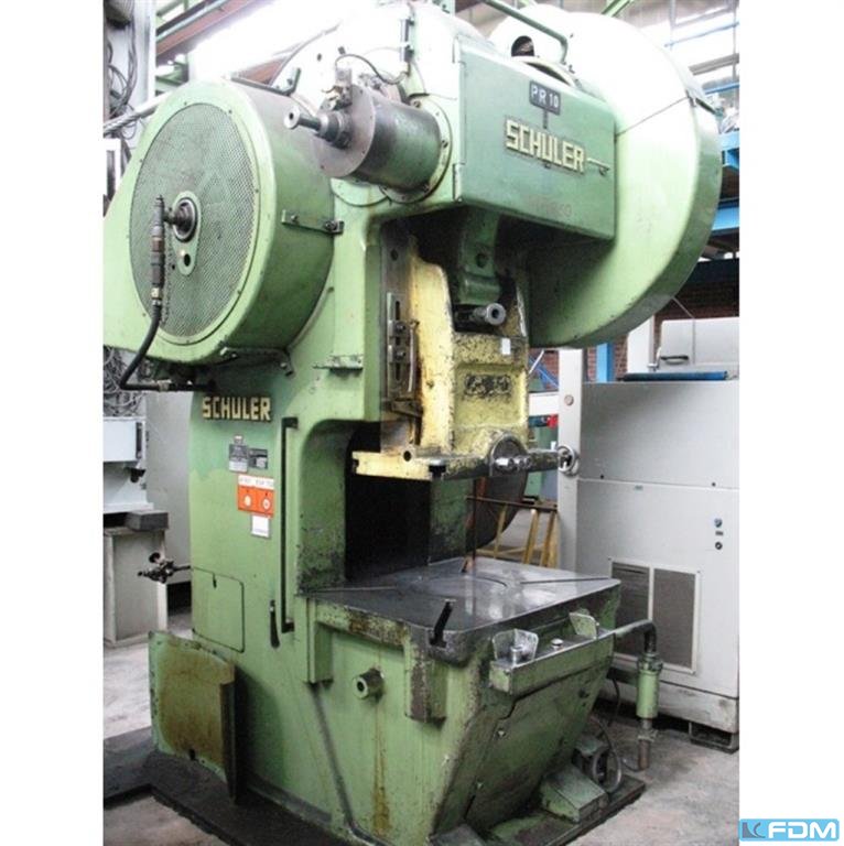pressure:100 t throat:315 mm stroke:30 - 160 mm no. of strokes:40 /min distance table/ram, max. stroke up, adjustment up:460 mm table surface area:910 x 680 mm Hole in the table:400 mm table height over floor:800 mm passage to the back:400 mm ram surface:630 x 400 mm ram adjustment:80 mm power requirement:7,5 kW weight:7,5 t dimensions (WxDxH):1,7 x 2,0 x 3,0 m German Safety: permitted for manual loading:UVV 11.062 - VBG 7n5.1 clutch:pneumatic overload protection in ram:mechanical ram counterbalance:pneumatic