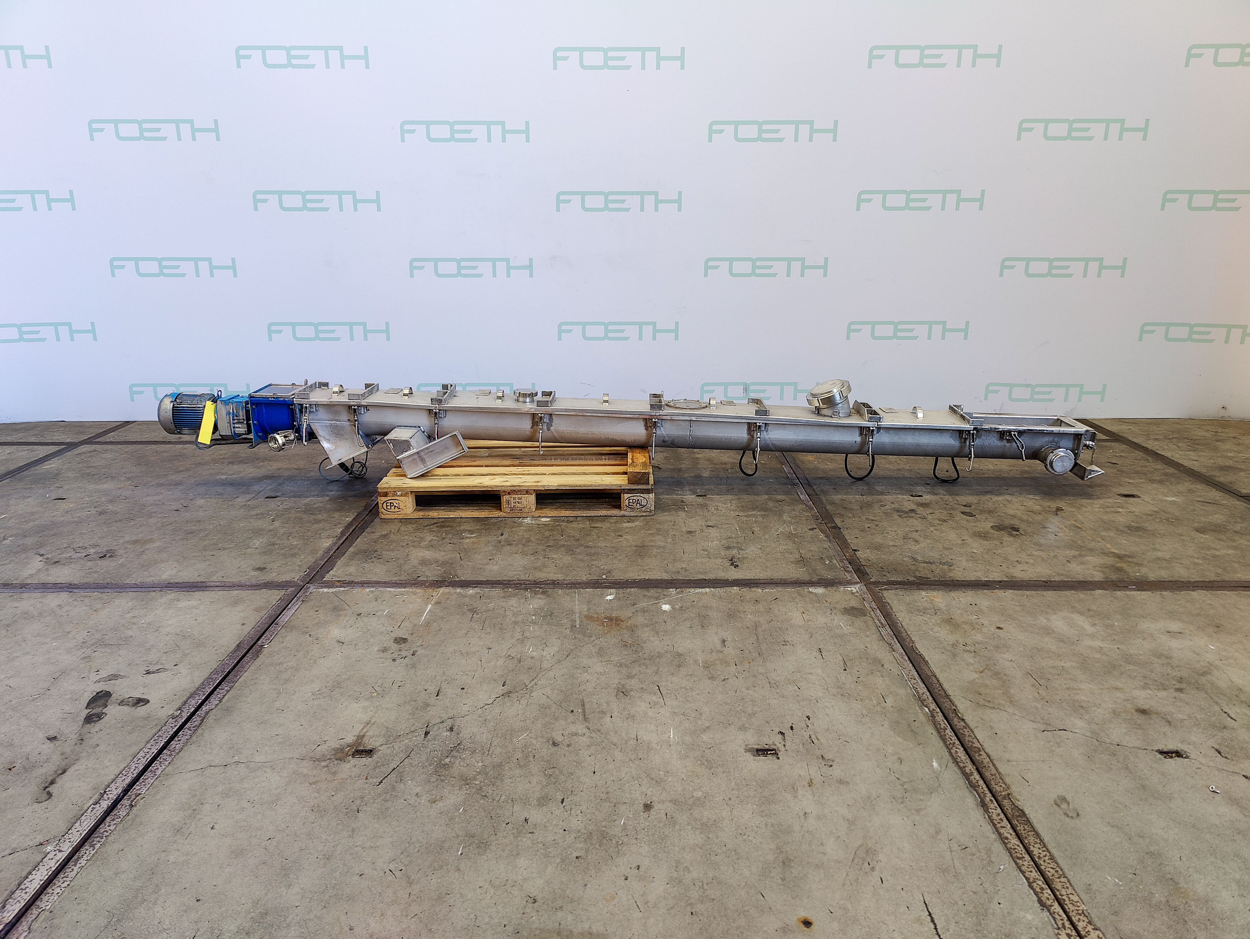 General SKU362W983 MakeFas Förderanlage TypeA250 LocationBarneveld CEcheck Main Features MaterialStainless steel Motor1.5 KW Length2500 mm Inlet diameter200 mm Specified Features - Vertical screw conveyor MaterialStainless steel 1.4301 (304) Vertical conveyor screws Horizontal conveyor screwcheck Trough-typecheck Vertical conveyor screwcheck Trough-modelcheck Diameter250mm Length2500 Between inlet and outlet2100 mm Shaft diameter100 mm Pitch190 mm InletDia. 200 mm OutletDia. 200 mm With adjustable packing glandscheck Motor1,5 kW, 230/400 volt, 1405 rpm Screw speed80 rpm Conveying height± 2000 mm With coverscheck Information No.02/02/45 Mach.No.02/02/45 Year of construction2002 Floorspace3,90 x 0,60 m Total height0,70 m Weight390 kgFine chemicalsStarchOther chemicalRubberBiotechnologyAgrochemicalsSpicesPlastic & polymersCatalysts & fillersFeed additi ...