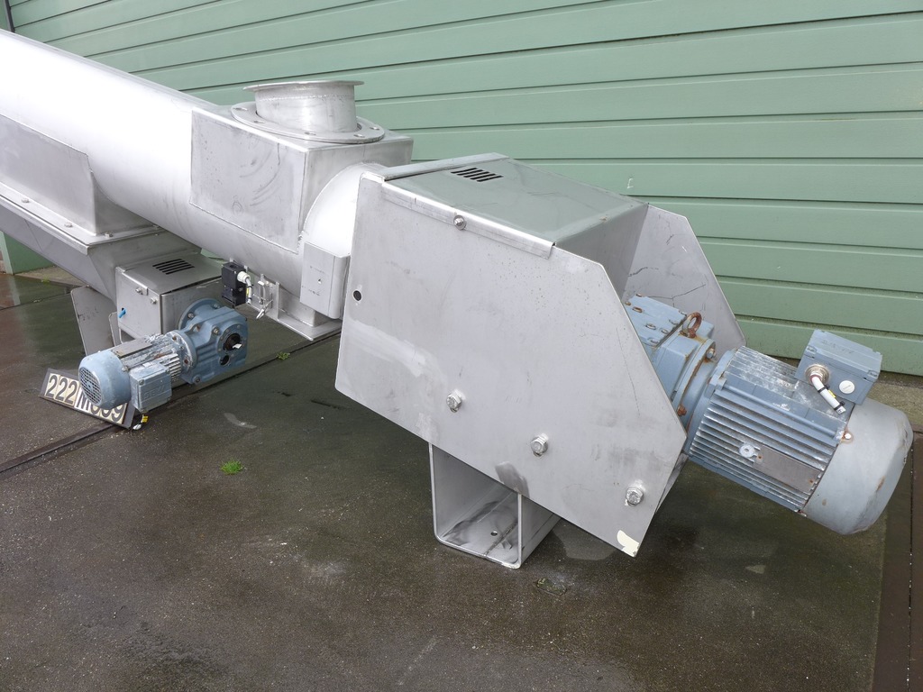 General SKU362W1148 LocationBarneveld Main Features Motor1.1 KW Length3500 mm Inlet diameter150 mm Specified Features - Vertical screw conveyor MaterialStainless steel 1.4401 (316), Stainless steel 1.4571 (316Ti) Vertical conveyor screwcheck Diameter150 mm Length3500 mm Between inlet and outlet2300 mm Shaft diameter55 mm Pitch90 mm InletDia. 150 mm Outlet200x180 mm Motor1,1 kW, 220-240/380-415 volt, 1400 rpm Screw speed64 rpm With coverscheck Information MakeUnknown Year of constructionunknown Floorspace4,30x0,70 m Total height0,50 m Weight200 kgFine chemicalsStarchOther chemicalRubberBiotechnologyAgrochemicalsSpicesPlastic & polymersCatalysts & fillersFeed additivesPaper & otherSolventsVertical screw conveyorsDetergent & surf.Other pharmaceuticsCosmeticsOrganicsE-waste & metalFood additivesSugarLubricants & oleoDairyAnimal feedOther feedConfectionerySolid pharm ...