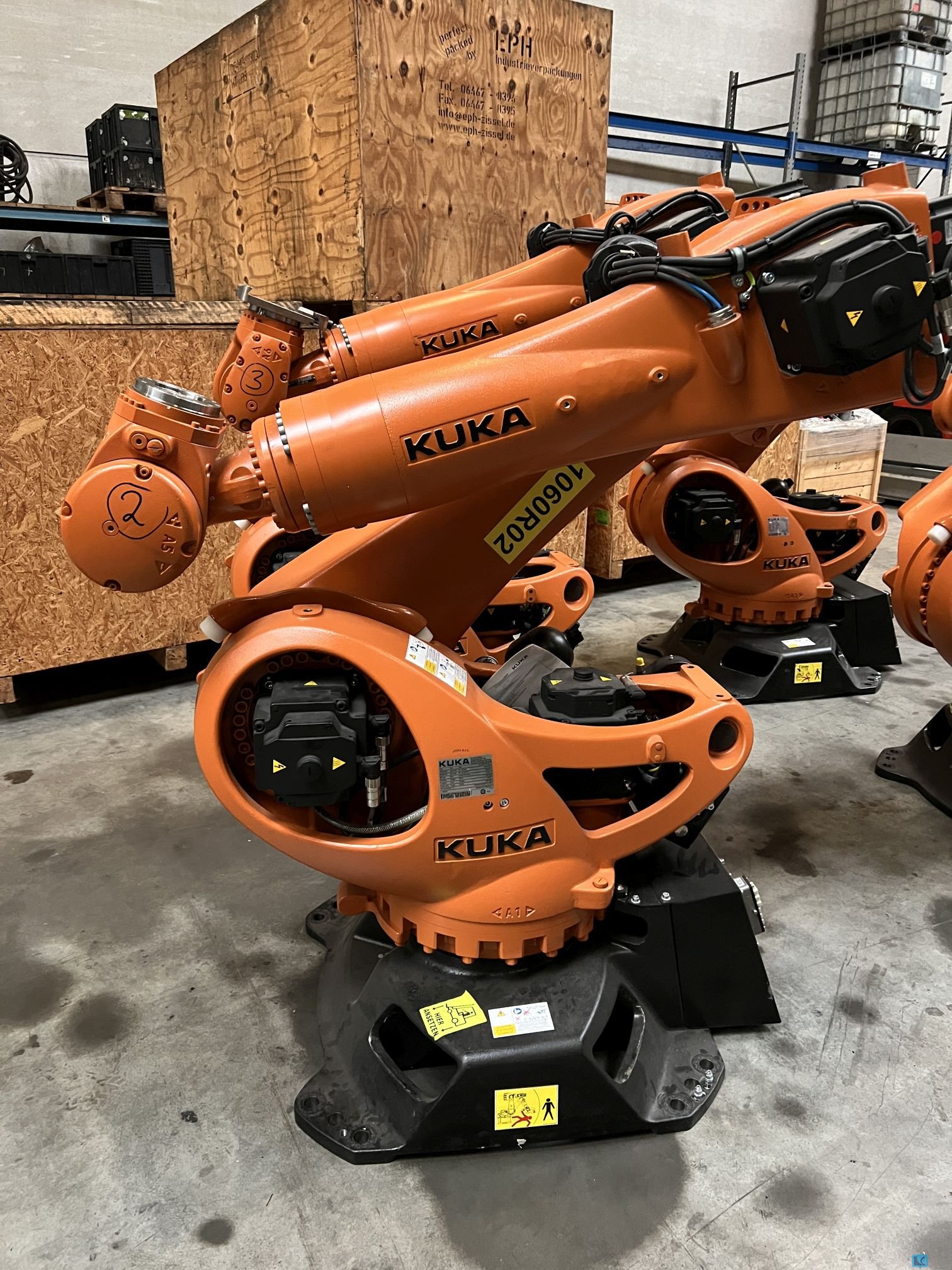 Controls:KUKA KRC 2 WORKING RANGE -ROBOT-:. - capacity:150 kg - Number of controlled axes:6 DIMENSIONS / WEIGHTS:. - total weight approx.:1285 kg