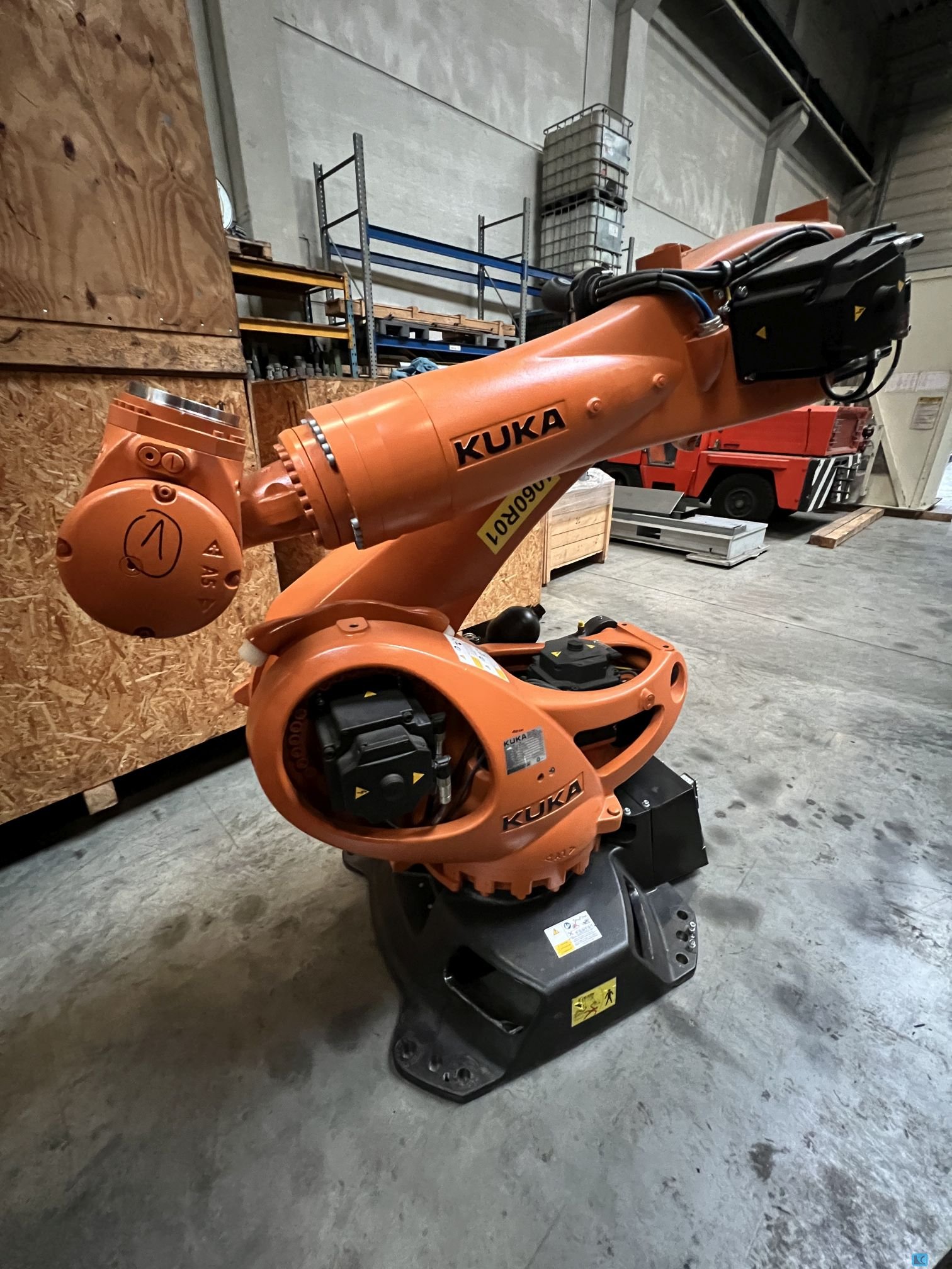Controls:KUKA KRC 4 WORKING RANGE -ROBOT-:. - capacity:120 kg - Reach:2896 mm - Number of controlled axes:6 ELECTRICAL SPECIFICATIONS:. - mains voltage:380 V - mains frequency:50 Hz DIMENSIONS / WEIGHTS:. - total weight approx.:1084 kg