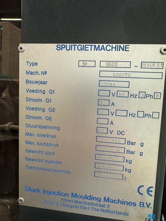 closing pressure:6600 kN weight of the machine ca.:45,5 t