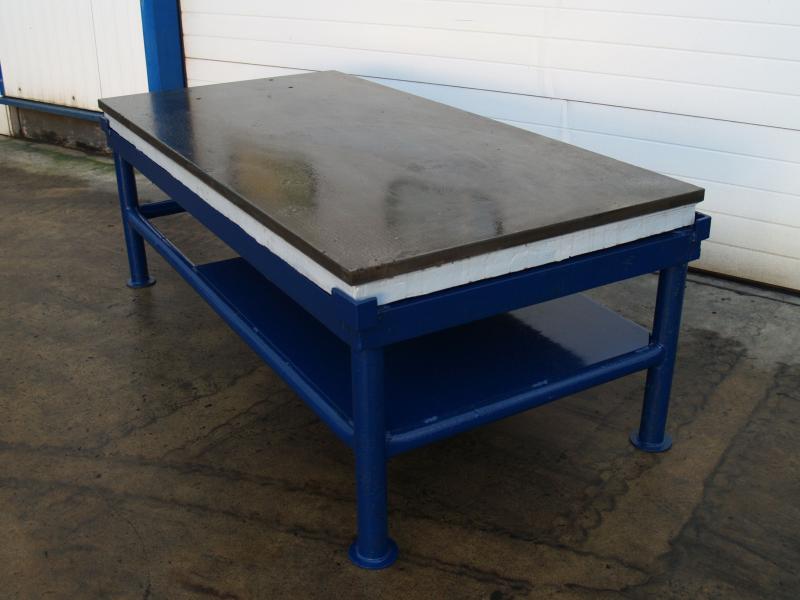 Straightening and welded plate cast steel-grey cast iron strongly ribbedLength 2000 mmWidth 1200 mmThickness 150 mmWorking height 800 mmPanel thickness 35 mm- Substructure made of solid woodWeight approx. 950 kgGood surface; used