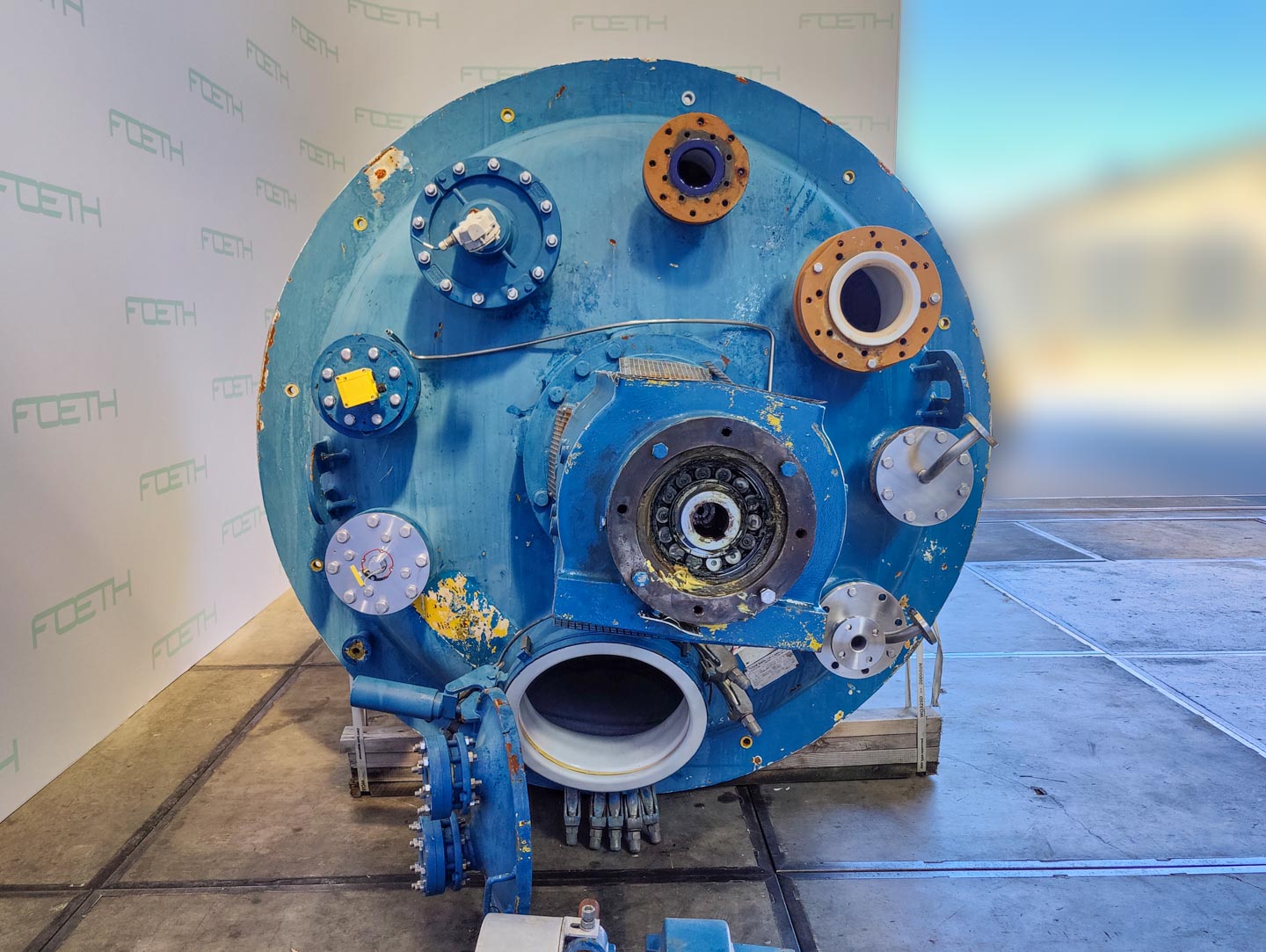 General SKU345S813 MakeR&M Italia (IT) No.8989 Year of construction2000 LocationBarneveld Pressure Working pressure3.5 Bar Vacuum possiblecheck Working pressure jacket9 Bar Vacuum possible jacketcheck Main Features MaterialGlass Volume6300 Ltr. Motor15 KW Specified Features - Glass-lined Reactor Reactorcheck Capacity6300 Ltr (8220 Ltr) Vessel sizesDia:2000 x3050mm Dished bottomcheck Dished top sidecheck ManholeDN500 Top connectionsDN250, DN150(2x), DN80 OutletDN150 With jacketcheck330 Ltr Max. temperature-30/200°C. With propellor stirrercheckAR5-100/2 Motor15,0 kW, 400 Volt EEx de/IIBT3) Speed mixing shaft21-104rpm Glass Reactors MaterialGlass - Enamel Information Floorspace2,6x2,6m Total height5,2 M Weight+/- 7500 KG ATEX compatiblecheckFine chemicalsOther chemicalBiotechnologyAgrochemicalsCatalysts & fillersGlass-lined ReactorsSolventsDetergent & su ...
