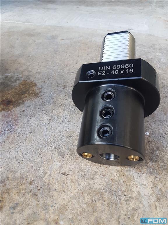 Tool holder type:Weldon 16 mm Tool holder shaft type:DIN 69880 E2-40 x 16 Shank diameter:40 mm length:75 mm 90° angle rotary tool holder BMT 40 There are two units available. Both are like new and never used. External coolant up to 80 bar.