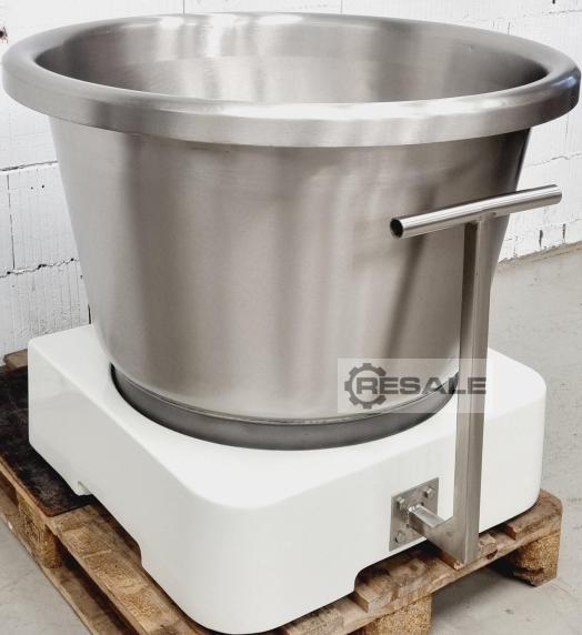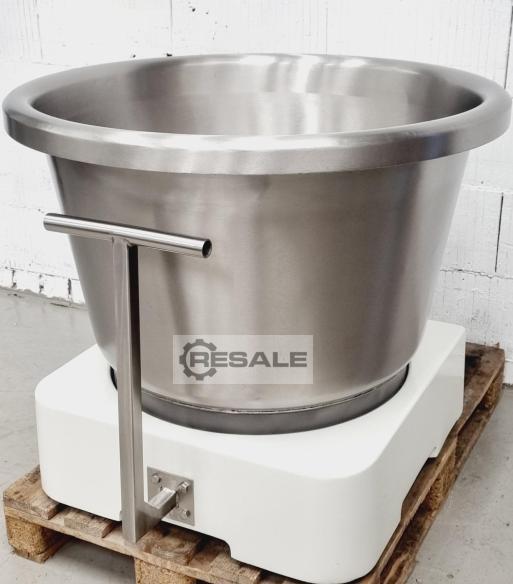 Stainless steel boiler for spiral mixer Kemper ST 100 A Product description Manufacturer: Emil Kemper GmbH Type: ST 100 A Condition: used, baker's condition The kettle is integrated on a trolley The trolley is easy to drive and rotate The kettle can be rotated on the trolley in all directions Material Carriage: metal Material Kettle: stainless steel for 100 kg flour, 160 kg dough Inner à ̃ of the kettle: 90 cm, 45 cm deep Outer shell of the kettle: 94 cm, 79 cm high Material thickness: 2 cm See pictures for details.
