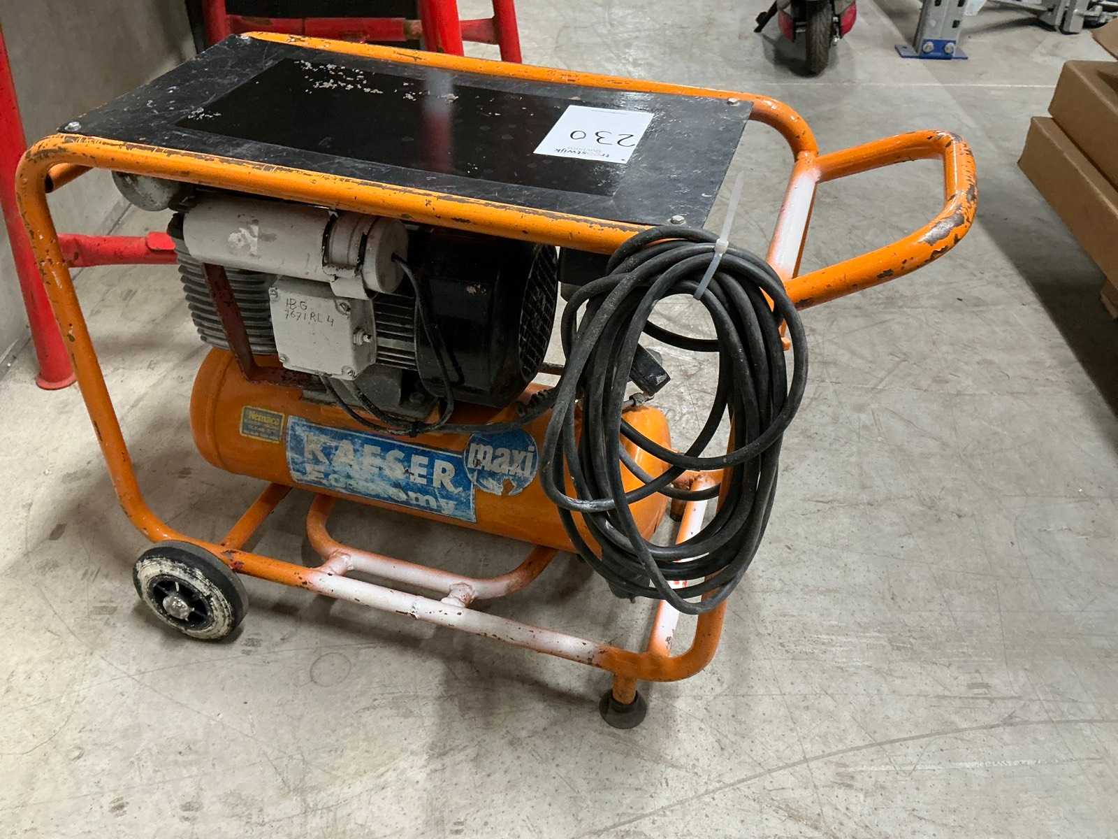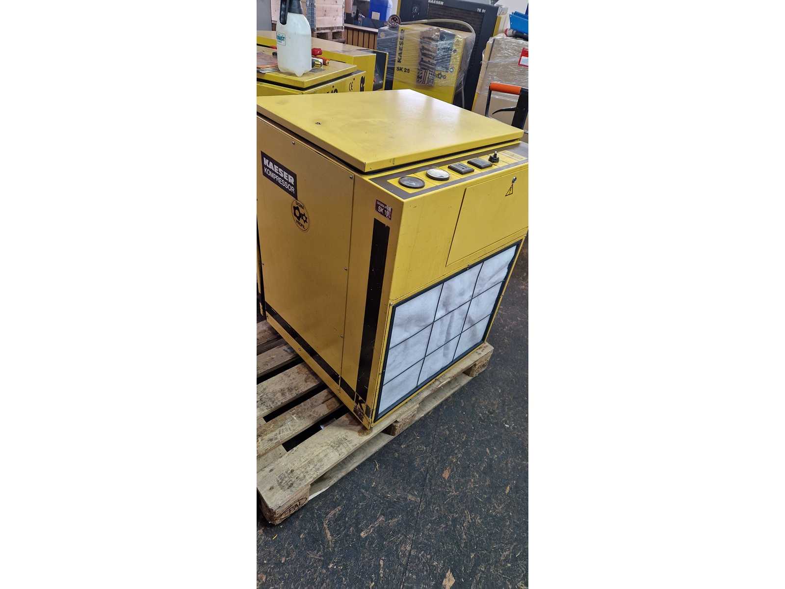 Screw compressor Kaeser SK 19 Manufacturer: Kaeser Type SK 19 Machine number 2233 Year of construction 2002 max. pressure 7.5 bar Power consumption 11 kW Delivery volume 1,855 l/min Operating hours 64,145 B/h Load hours 48,778 B/h Test run carried out lxwxh 84x78x101 cm Weight 270 kg Loading costs 50.00 Euro Auction-ID: 04J-7XZ-1