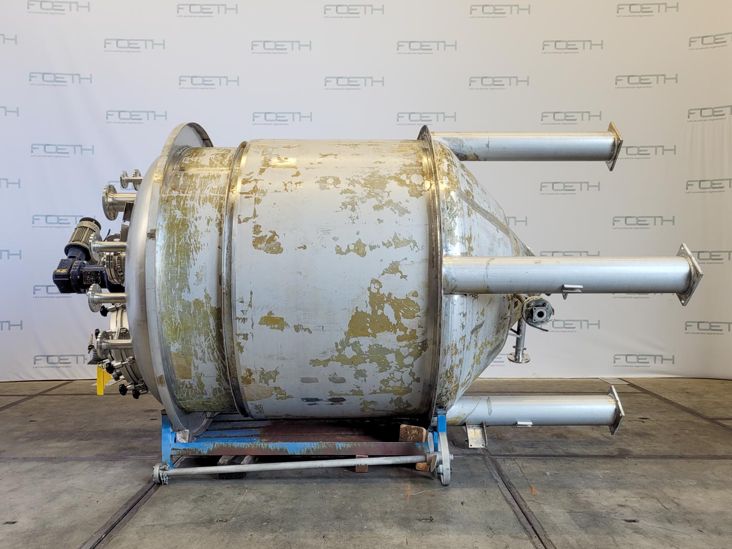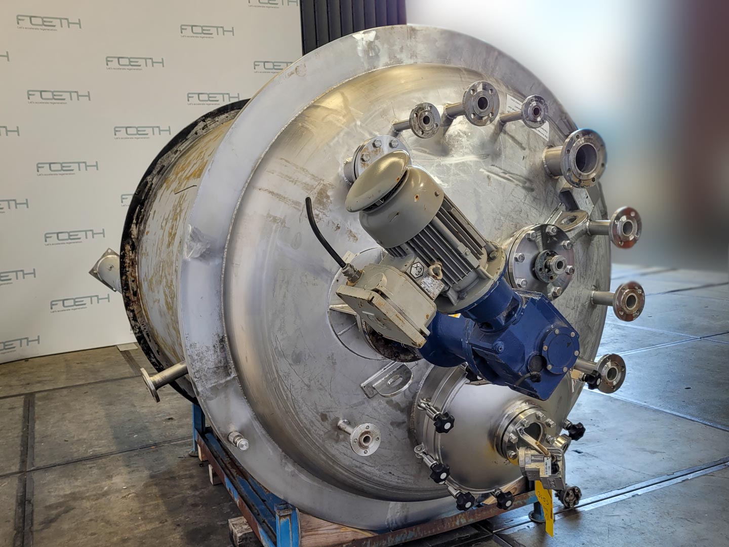 General SKU345S744 MakeKresta Anlagen- Stahl- und Montagebau GmbH (AT) No.94146-6 Year of construction1994 Mounted on legscheck Pressure Working pressure3.2 Bar Working pressure jacket6 Bar Main Features MaterialStainless steel Volume4000 Ltr. Motor1.3 KW Specified Features - Stainless Steel Reactor MaterialStainless steel 1.4571 (316Ti) Stainless Steel Reactors Reactorcheck Capacity4000 Ltr (5500 Ltr) Vessel sizesDia: 1800 x2895mm Conical bottomcheck Dished top sidecheck ManholeDN600 Top connectionsDN150, DN50, DN40, DN25 OutletDN50 With jacketcheck(600 Ltr) Max. temperature-10/200°C With propellor stirrerHWL-040-L Motor1,3 KW, 230/400 Volt (EX) Speed mixing shaft484 rpm Information LocationBarneveld Floorspace2,21x2,21 m Total height4,1 m Weight3000 kg ATEX compatiblecheck Extra Specificationswith TÜVFine chemicalsOther chemicalRubberStainless Stee ...