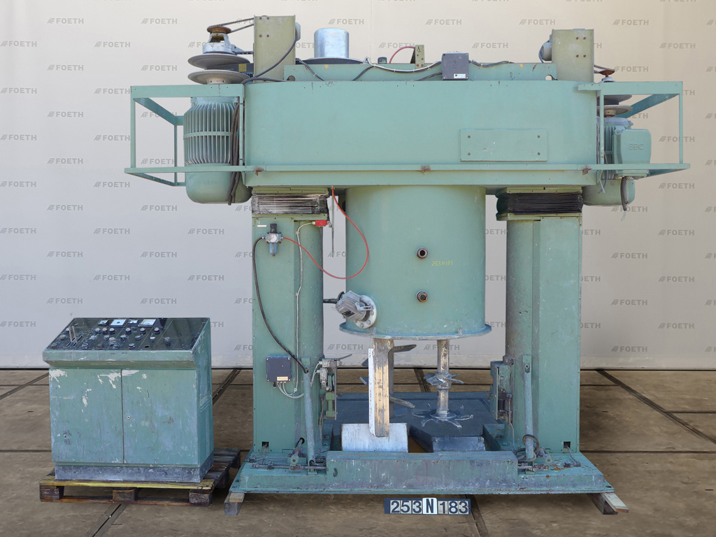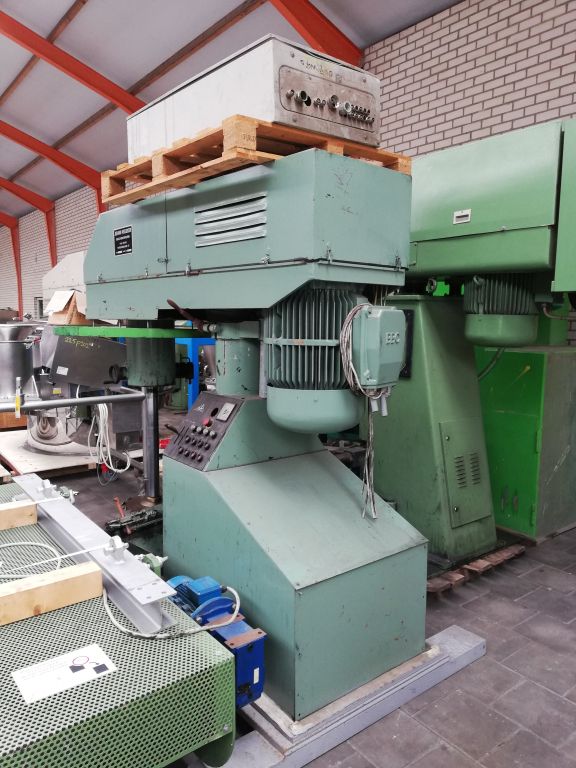 General SKU253N183 LocationBarneveld MakeJohann Kreuziger Maschinenfabrik TypeRDH 500 RERE No.21159 Pressure Working pressure0 Bar Vacuum possiblecheck Main Features MaterialStainless steel Volume450 Ltr. Motor80 KW Specified Features - Planetary mixer Planetary mixercheck 1 Mixing/kneading shaftmixer arm and dissolver disc With scrapercheck Motor57 kW (mixer): 20 kW (dissolver) With variable speed drivecheck With gear boxcheck With panø 950 x 650 mm (on wheels) Capacity450 l Outlet75 mm With hydraulic liftingcheck (3,6 kW) MaterialStainless steel Information Year of construction1986 With switchgearcheck (as is) Floorspace3,6 x 1,8 m Total height3,4 m Weight6000 kgFine chemicalsOther chemicalCatalysts & fillersSolventsDetergent & surf.Other pharmaceuticsLubricants & oleoOther feedDyes & pigmentsPlanetary mixersMinerals & inorganicOintmentsPaints & coatings ...