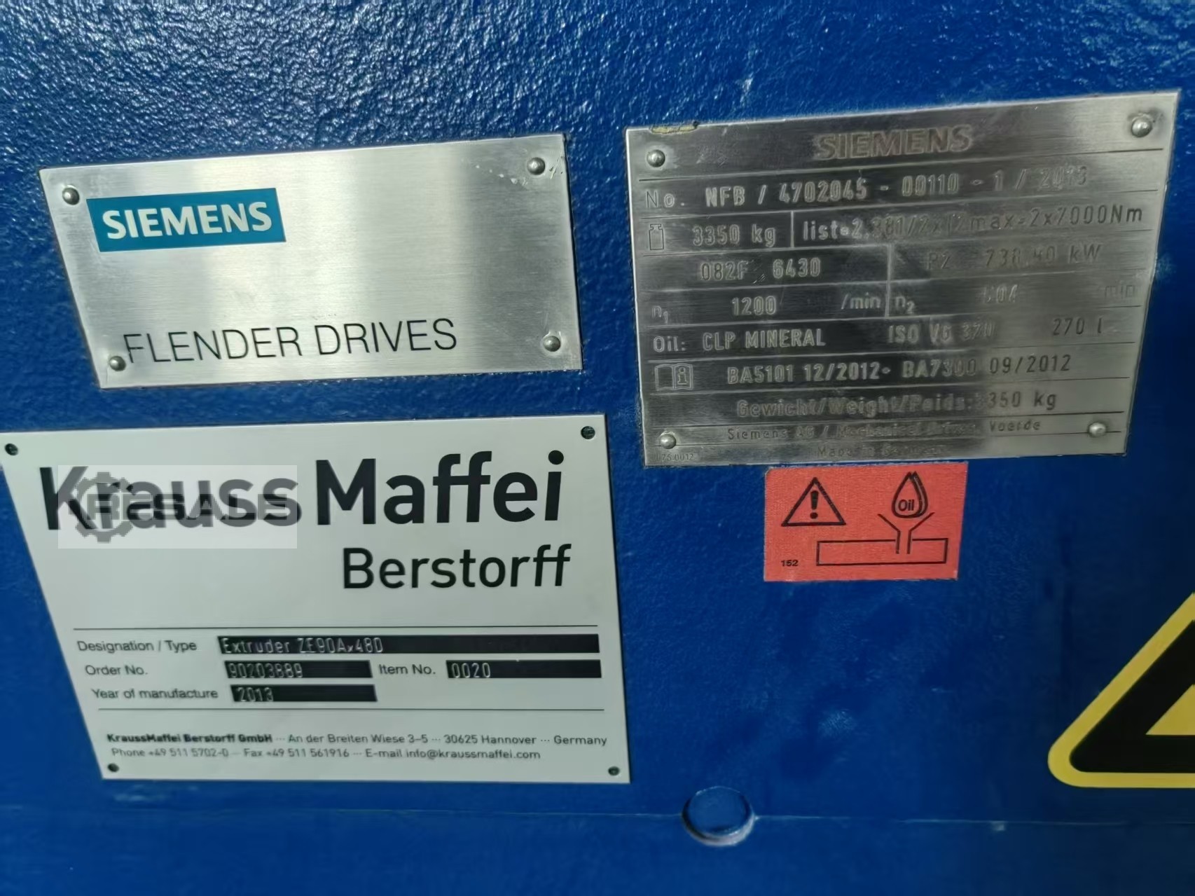 We can offer Krauss maffei extruder,moder ZE90A, manufactured in 2013, main motor power 884kw, large output, installed