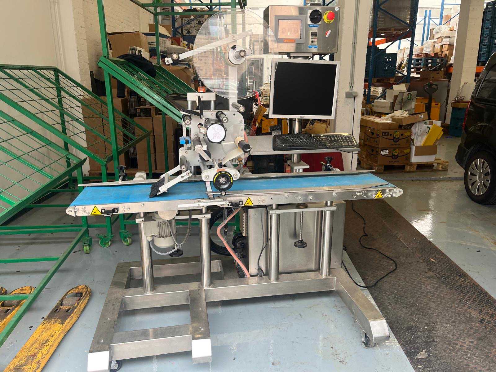 Programmable industrial labeling machine. With control screen. In working order. Weight +- 200kg Auction-ID: A3-43497-32129